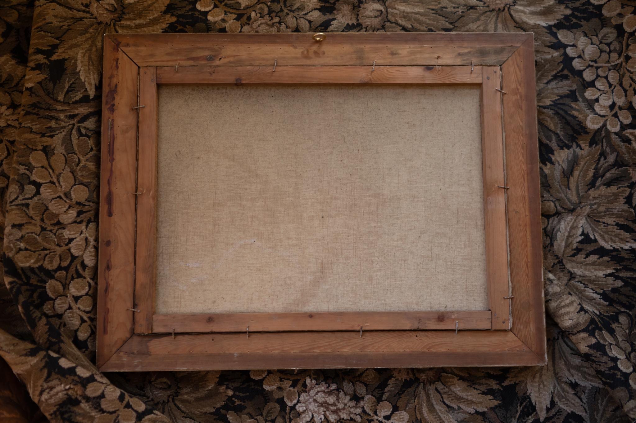 This 19th century painting comes in a lovely original gold frame with a tulip motif. This painting has recently been to the restorer for a professional cleaning and new varnish applied. The frame has had some repairs, but relatively minor. This heirloom piece of art is ready to hang for another 100 years.
