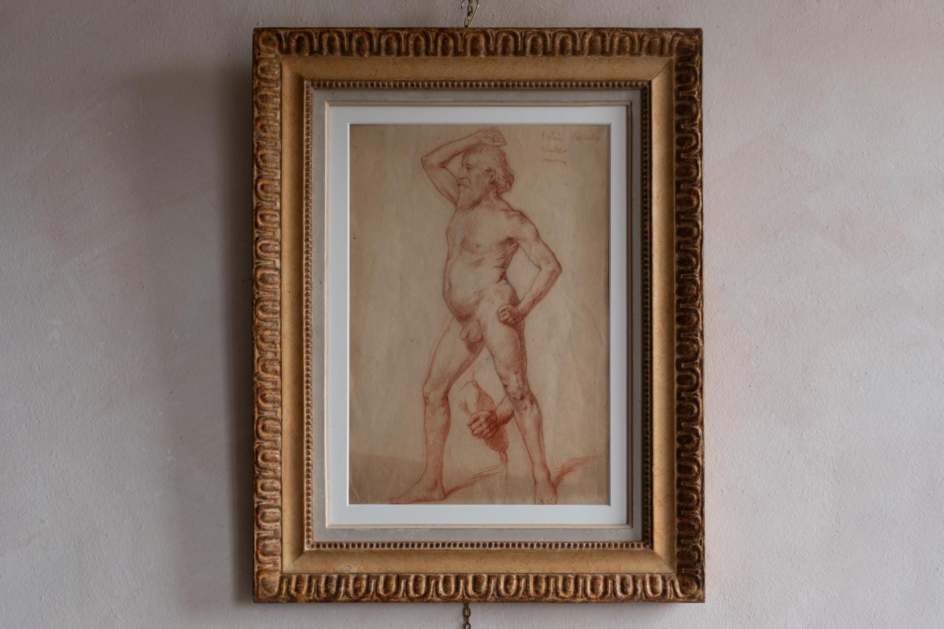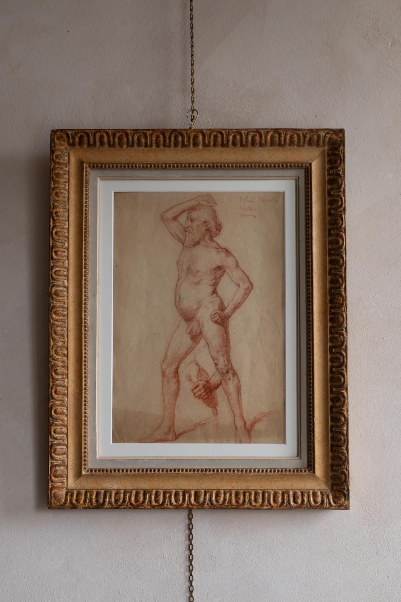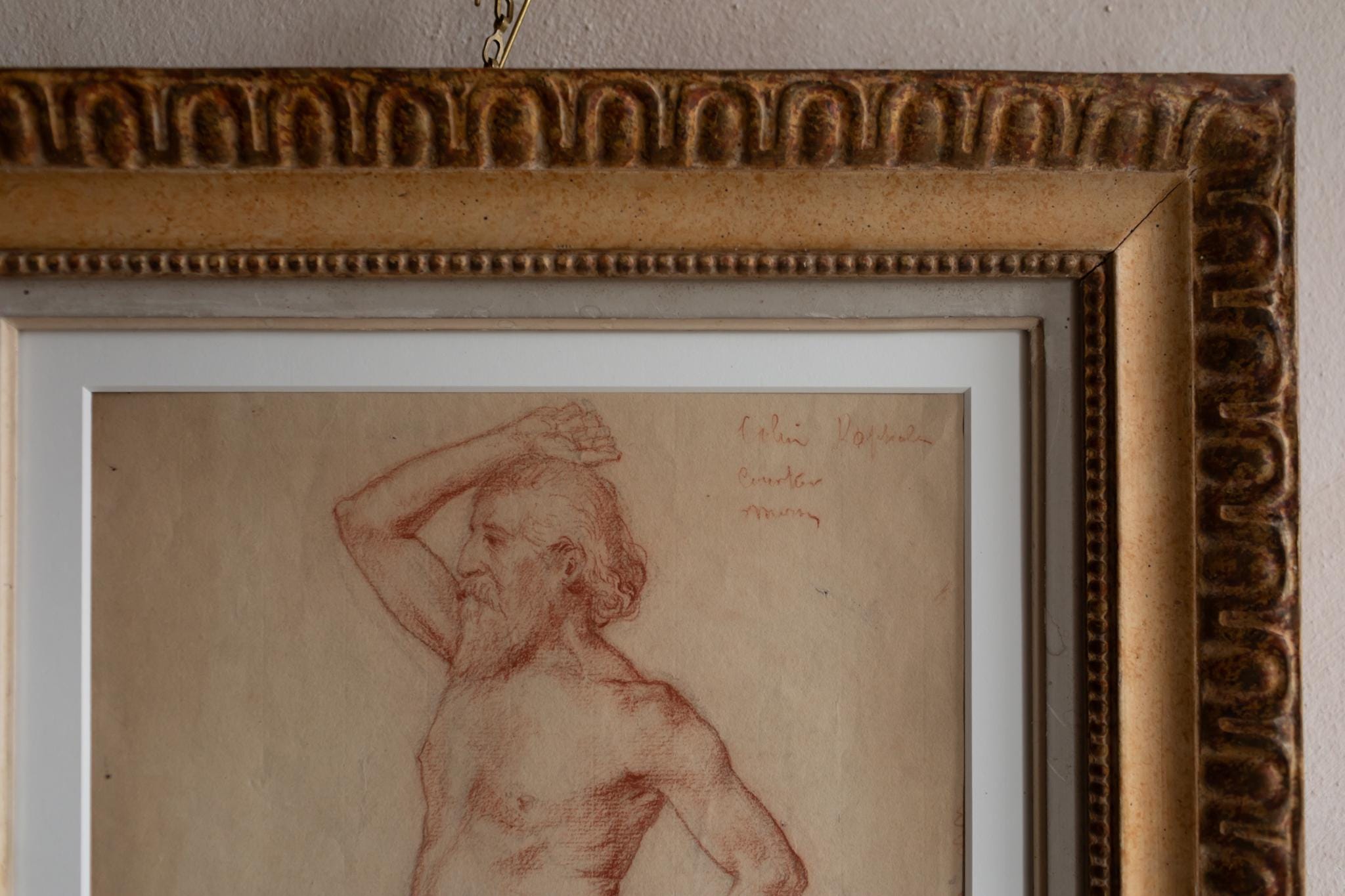 Circa 1800 French Academic Figure Drawing. Red Chalk Study in Antique Frame