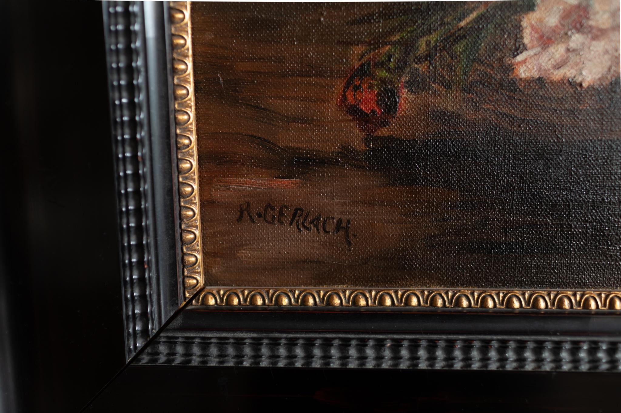 C1900 - Antique Dutch Flower Still Life Oil Painting of Carnations in Ebony Frame