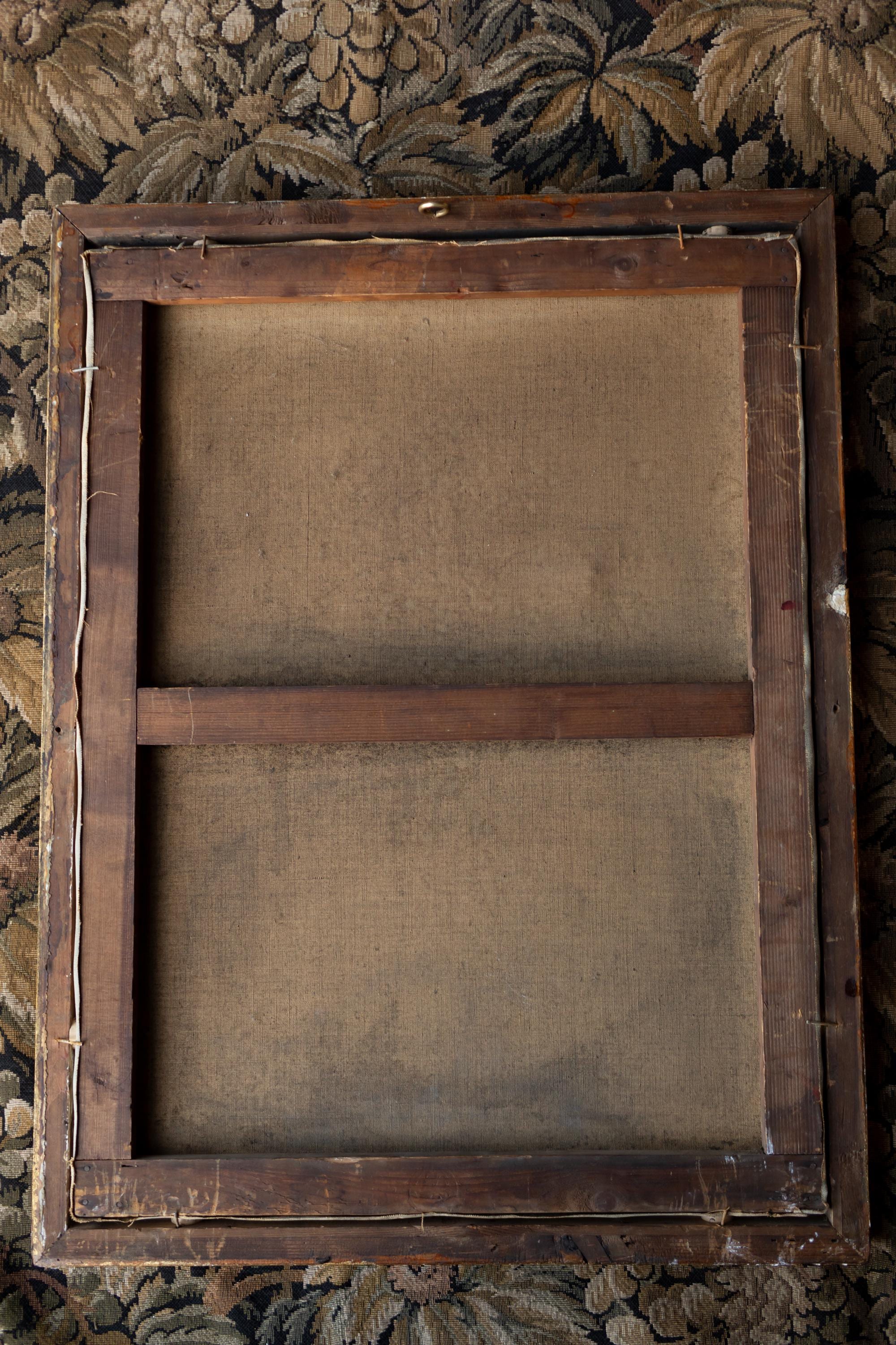 Good antique condition with light age-related craquelure and surface wear consistent with age. Paint surface is stable. Frame shows expected patina and minor wear, adding to its charm. The painting is executed in oil on canvas and housed in its original gilt frame, whose softly worn patina complements the richness of the composition and enhances its period character.