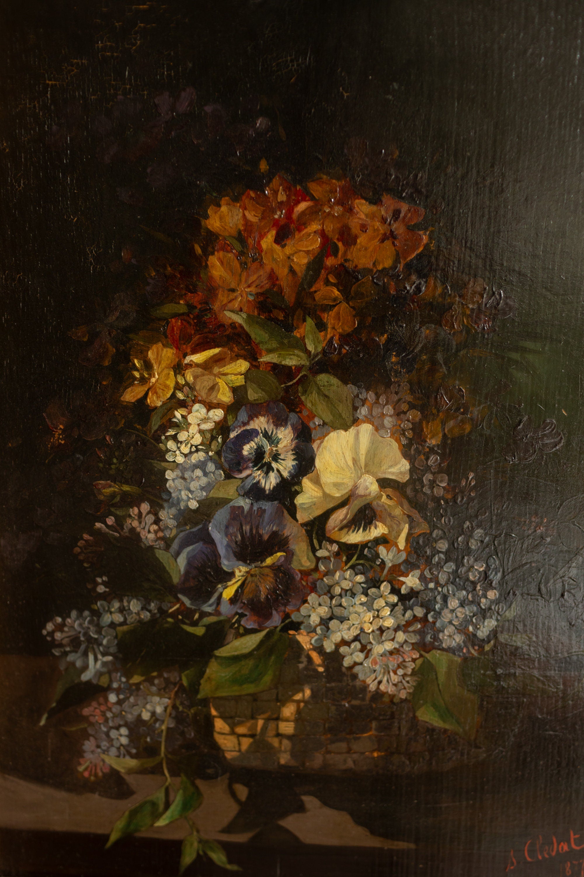 Large French Antique Floral Still Life Painting - Oil Paint on Panel - by Samuel Cledat de Lavignerie - 19th Century