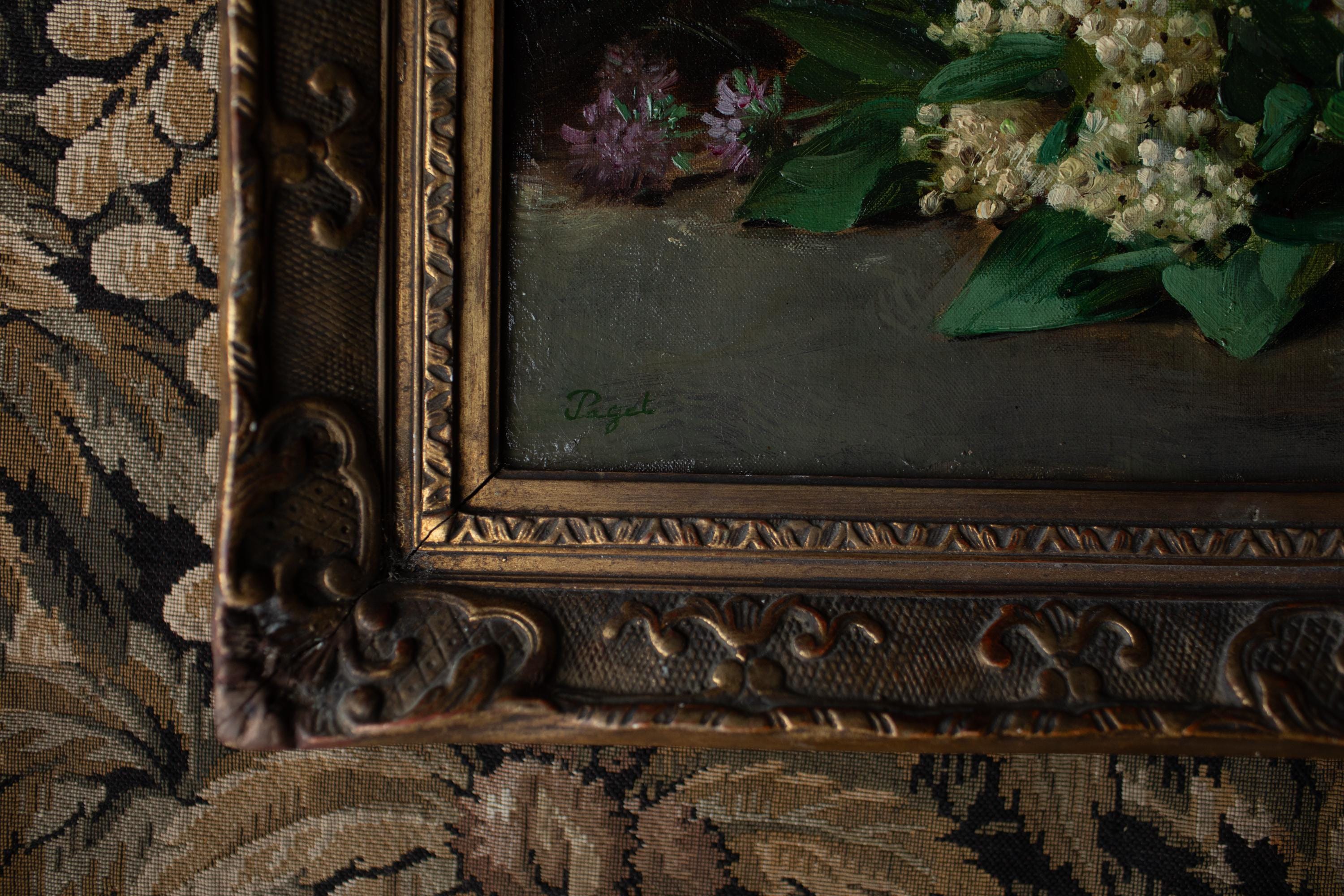 Late 19th Century French Floral Still Life. Signed “Paget”. Oil Painting in Gilt Frame