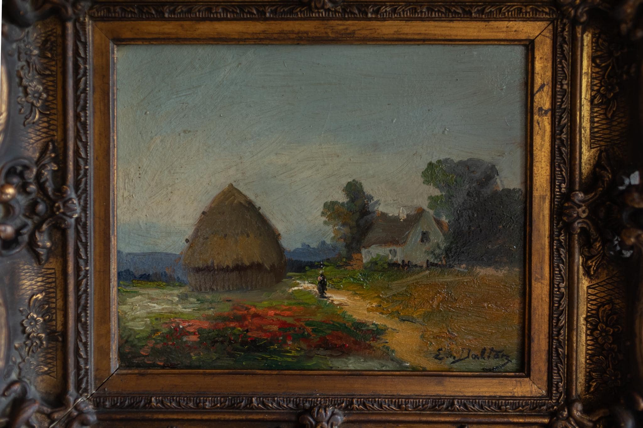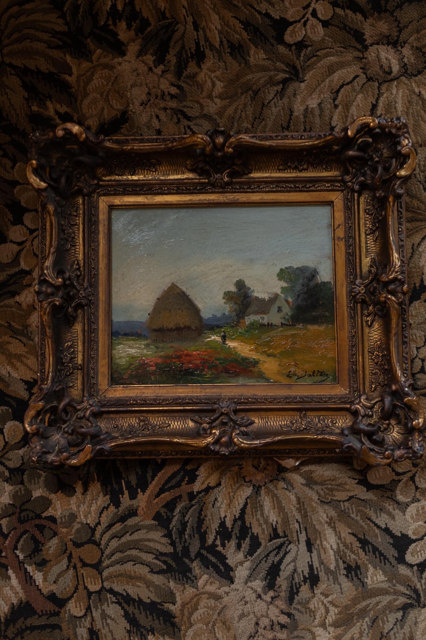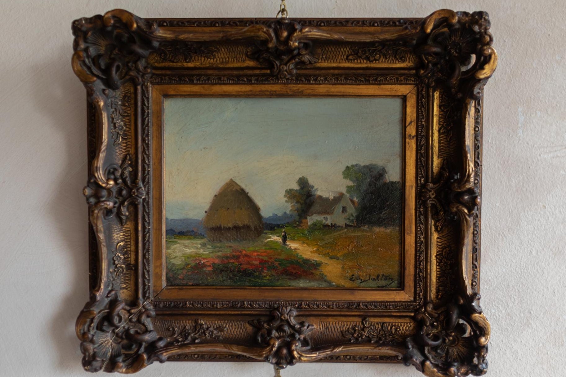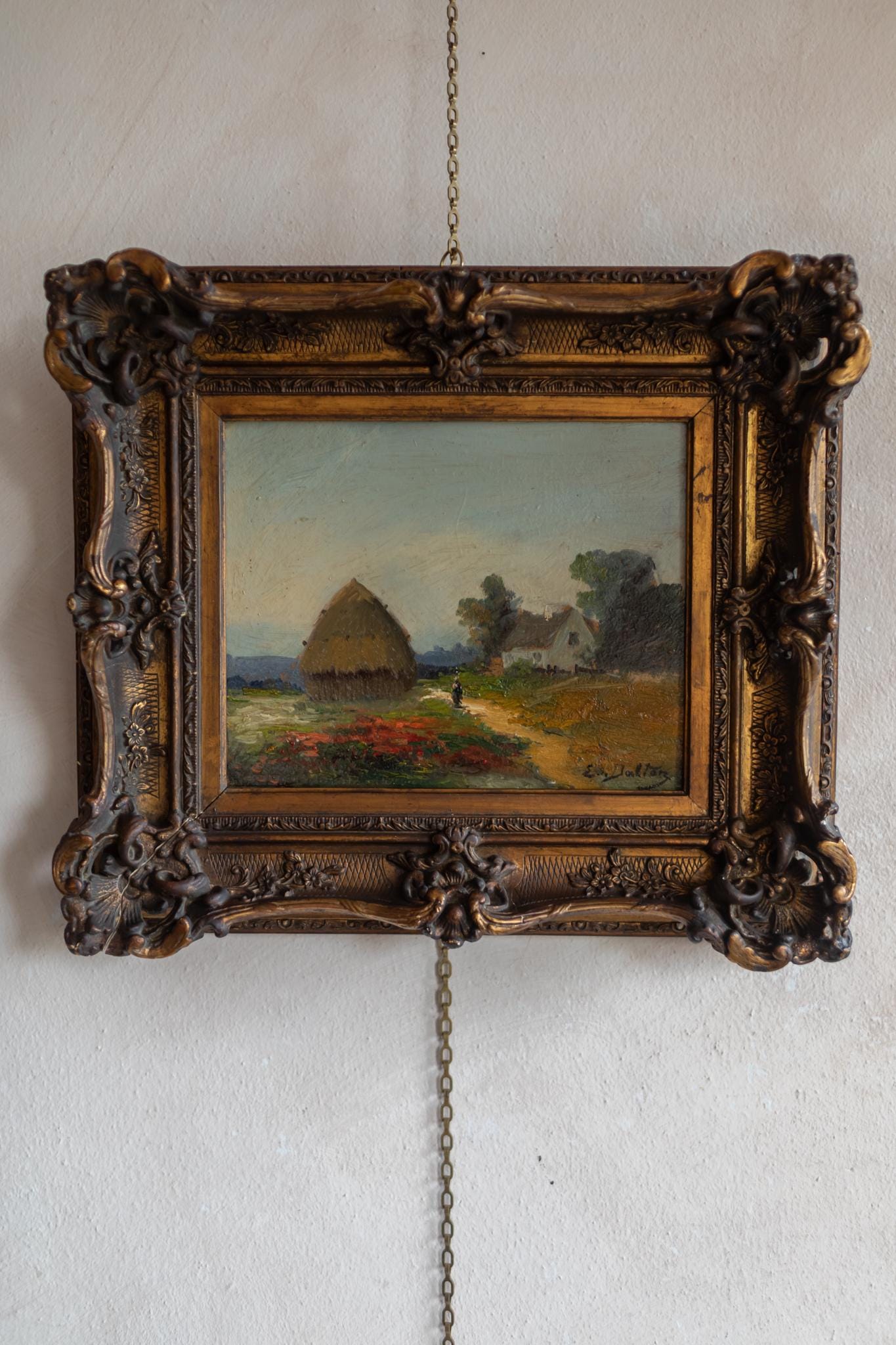 Antique French Impressionist Landscape Oil Painting - Haystacks and Farmlife