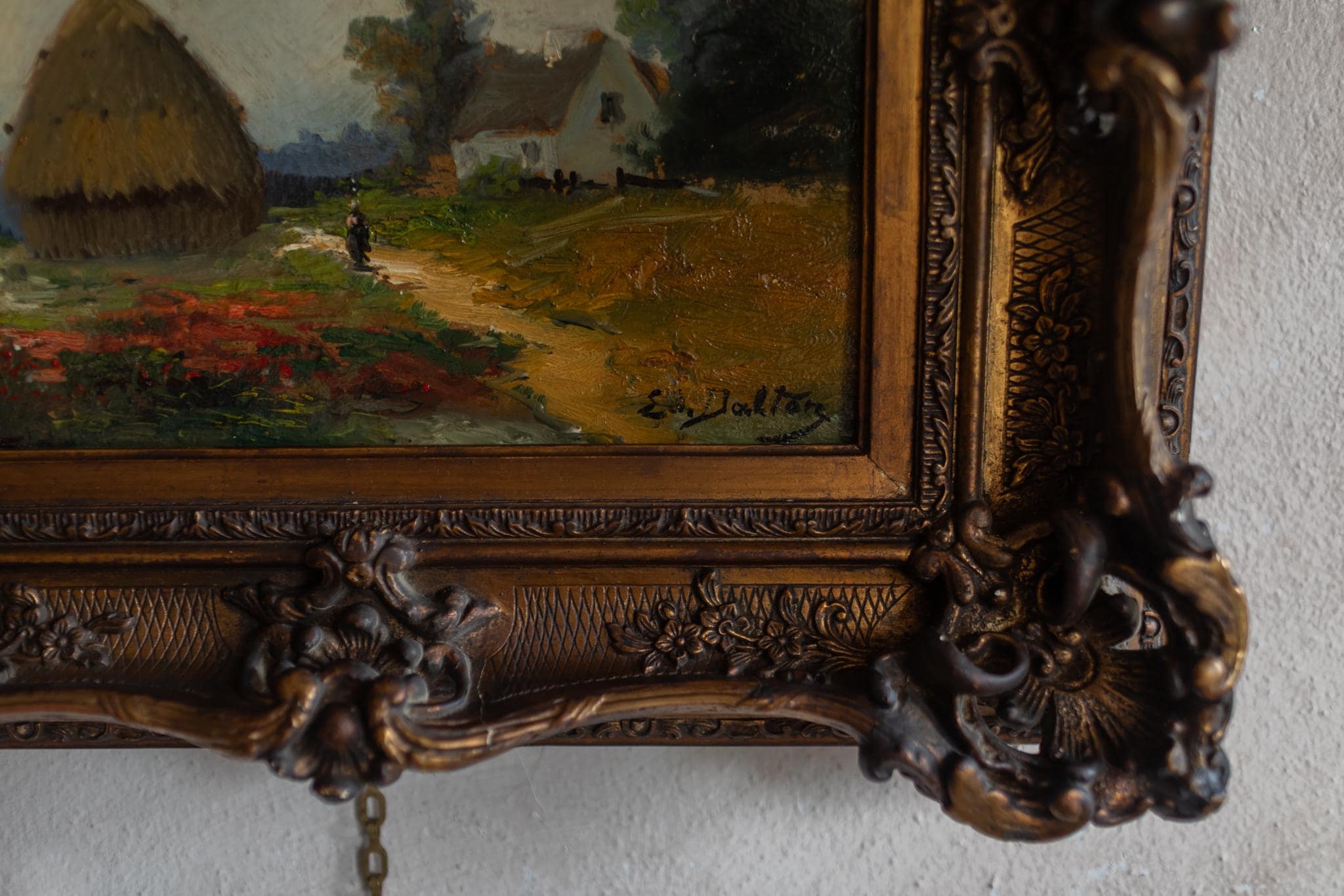 An antique oil painting of scenic landscape dating from the early 1900s. Signed in the lower right corner. Done with a thicker impasto and brush, bridging the classic French Pastoral landscape with the landscape impressionist work being done at the time. Monet and his landscapes were all the art world was talking about around the time this was painted and you can see the artist was clearly inspired by Monets work, with the haystack and farm life playing the key role in the work. Monets haystack series was still was still making their way through the Paris galleries. The painting has been to the restorer for a cleaning and new varnish applied. Ready to hang. Please see all photos.