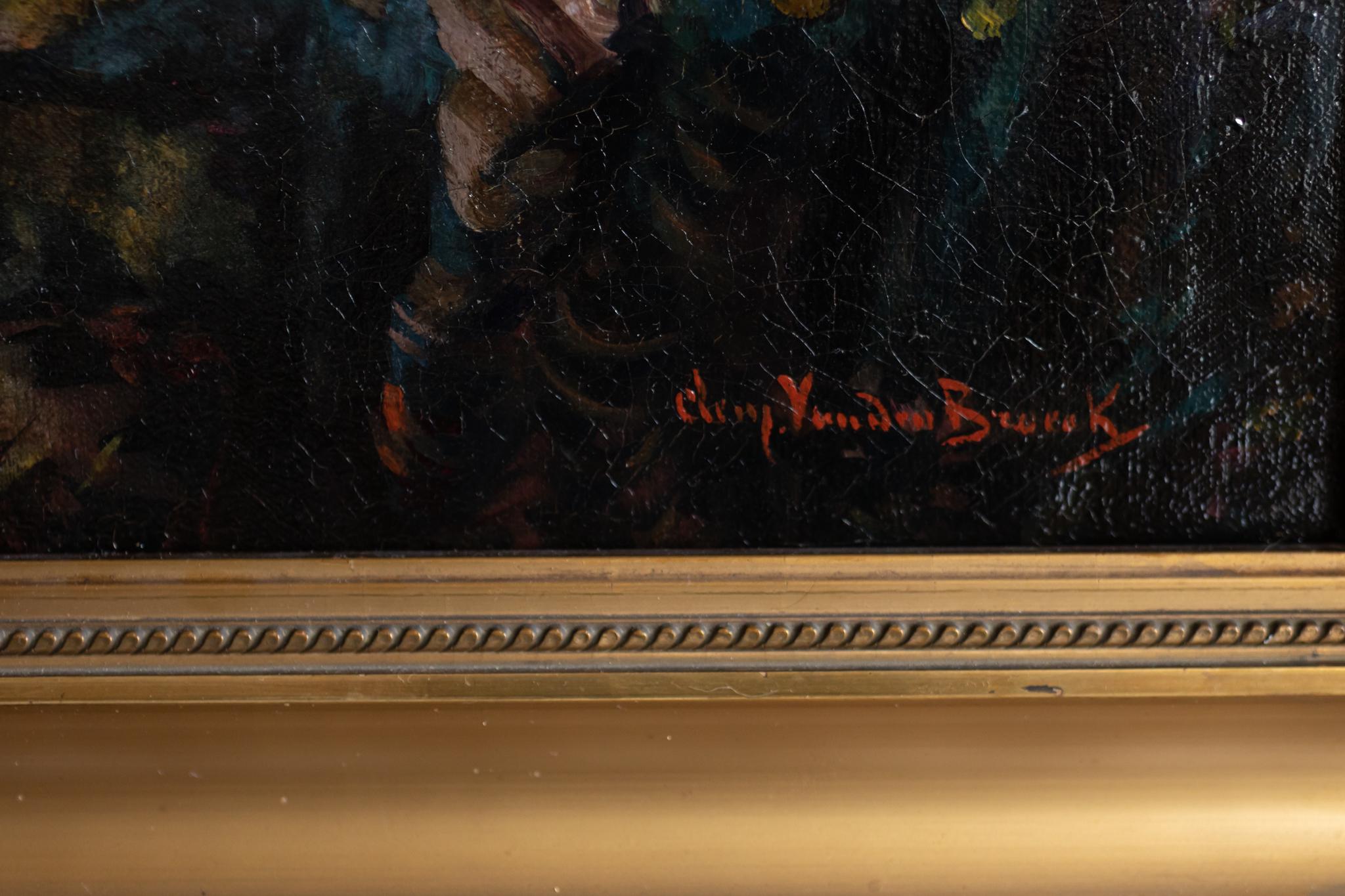 A dramatic turn-of-the-century (Circa 1900) floral still life by the Belgian artist Clémence (Clem) Van den Broeck (1843–1922). This richly painted oil on canvas features bold colour, deep shadow and exquisite detail, embodying the elegance and intensity of late 19th-century Flemish still-life painting.