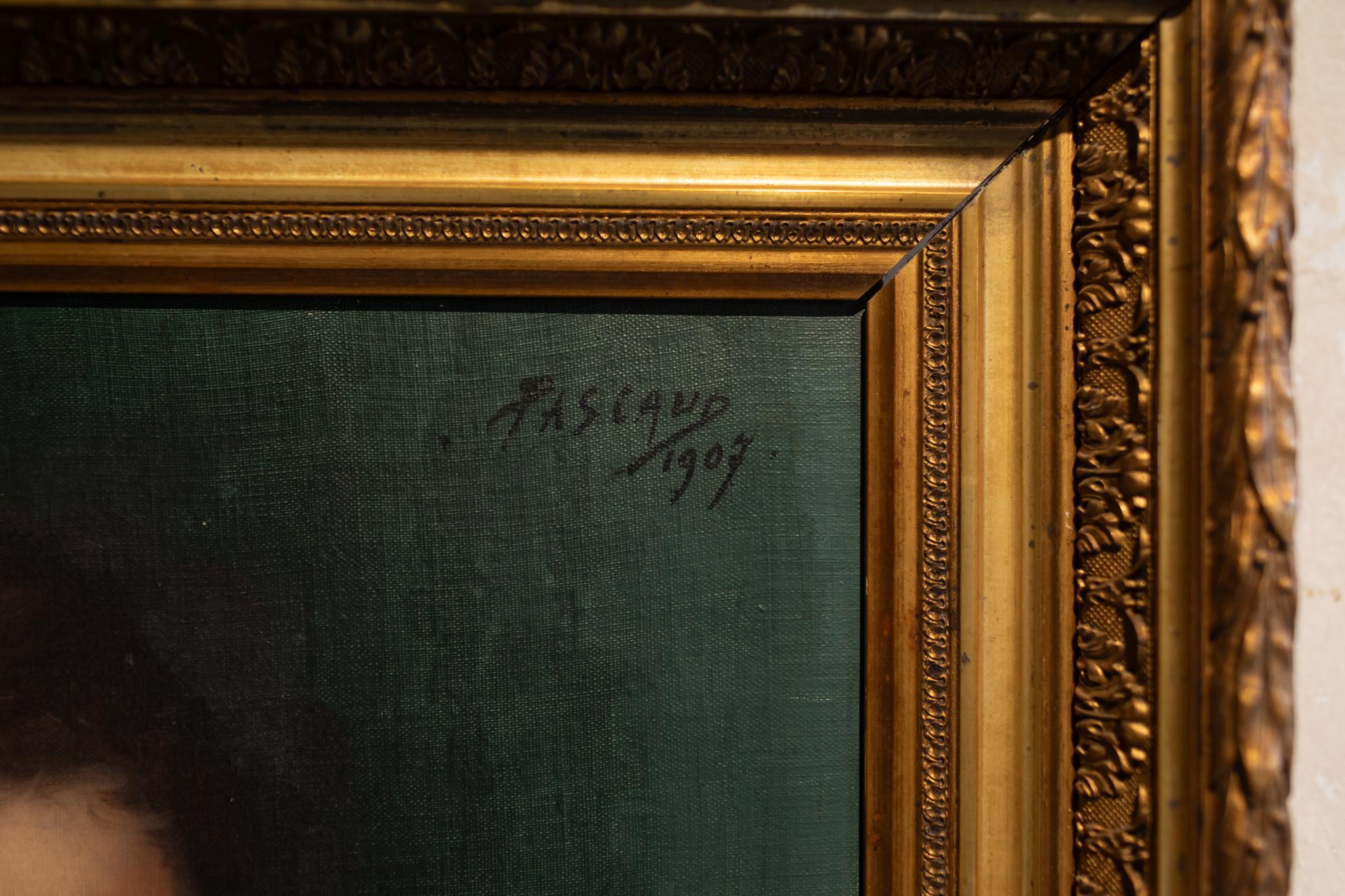 Dated 1907 - Antique French Portrait Oil Painting of a Dapper Man with a Great Moustache