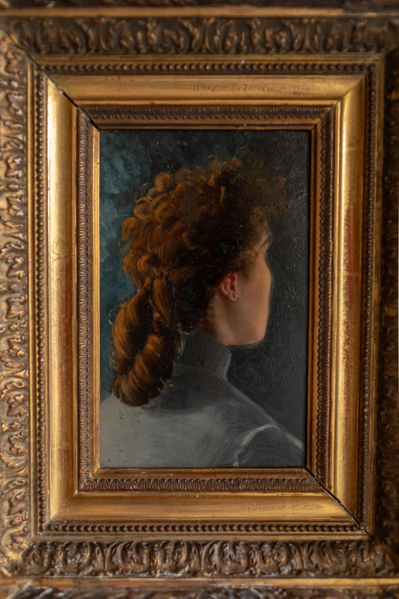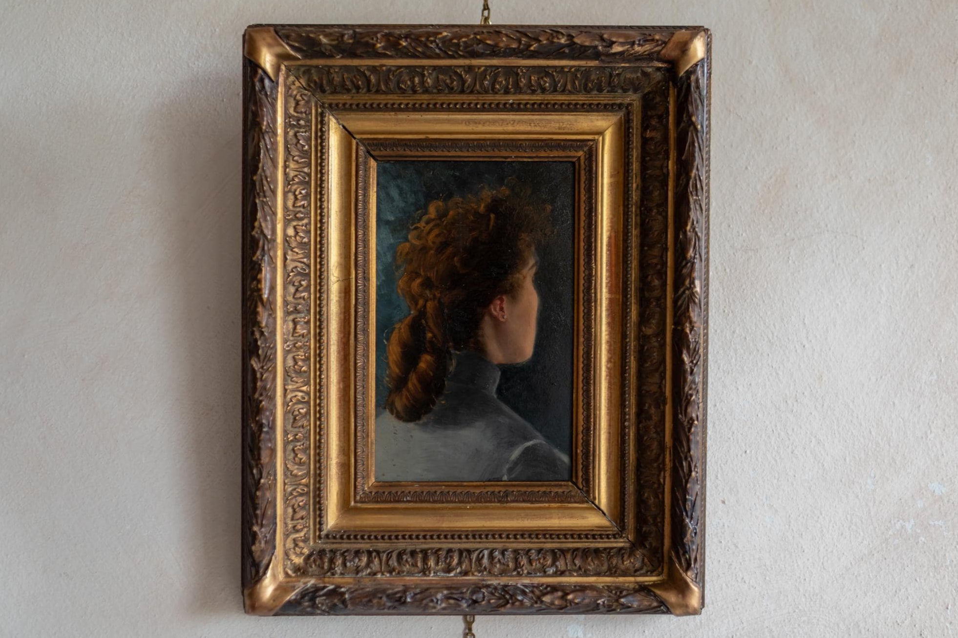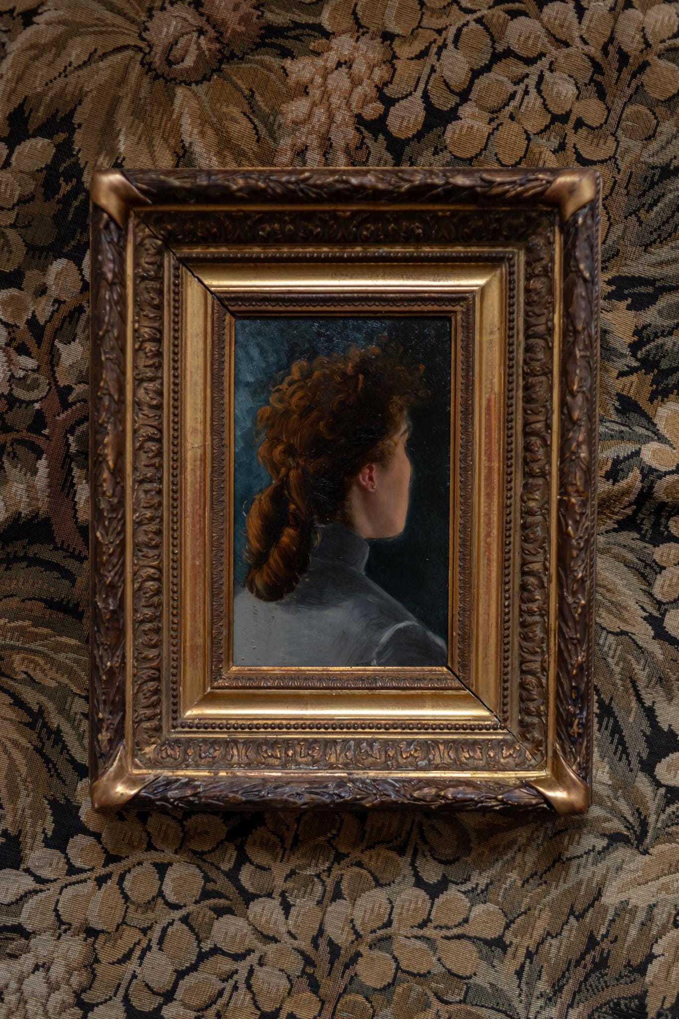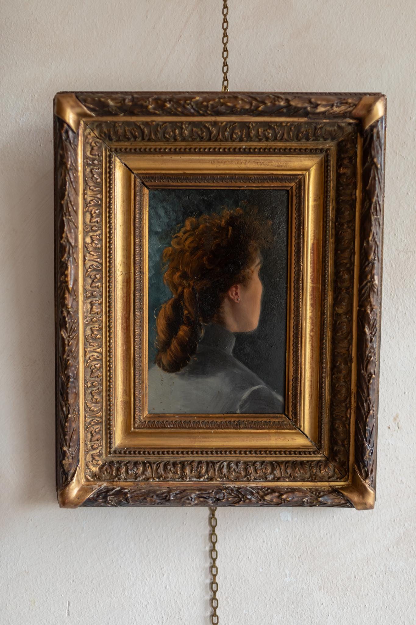 Antique French Portrait Oil Painting from the Back in Antique Frame