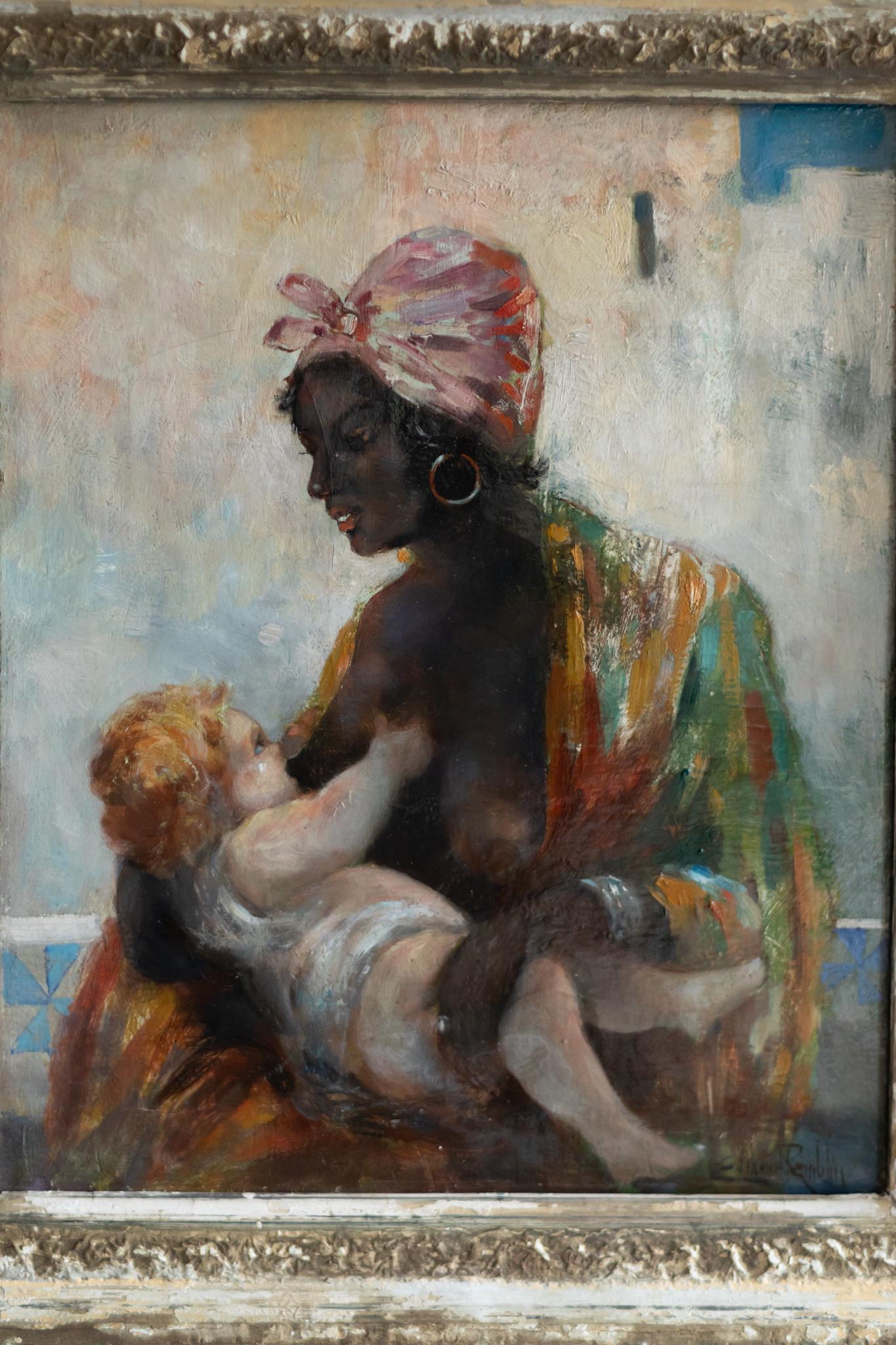 Antique French Portrait Painting from Paris - Woman Nursing a Baby