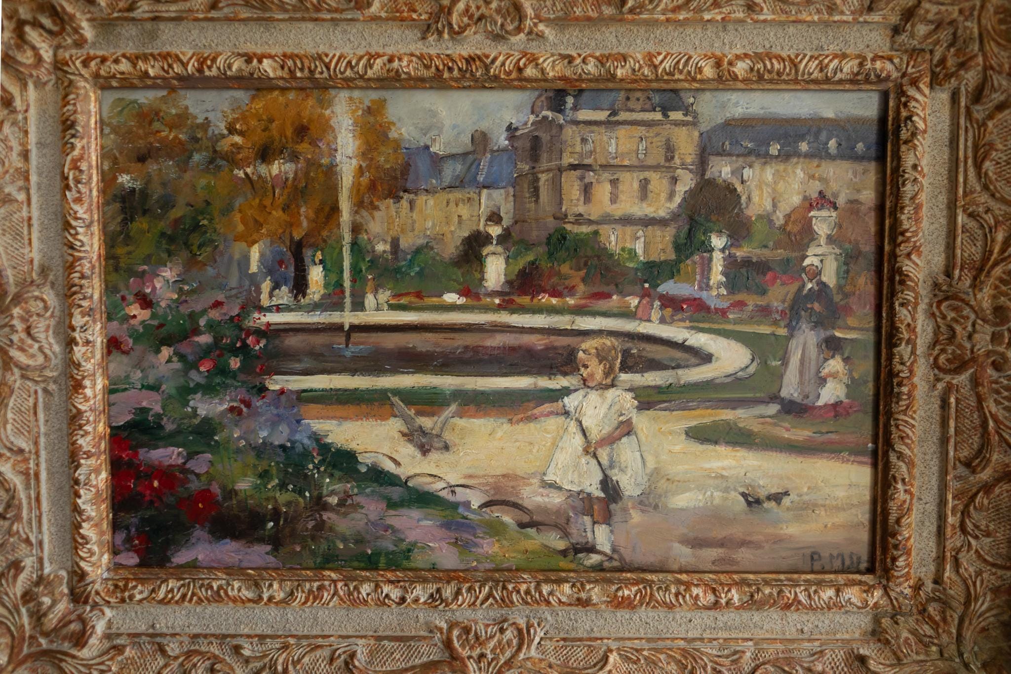 Circa 1900 - French Impressionist Landscape of the Jardin du Luxembourg in Paris in Montparnasse Frame