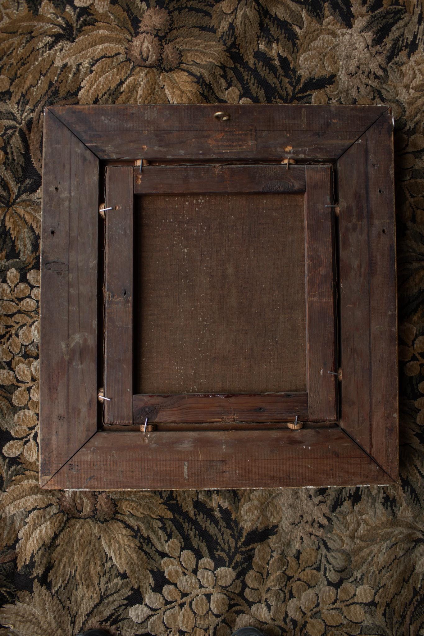 The painting is housed in a superb period gilt frame, beautifully cast with alternating striped and foliate mouldings. The frame’s depth and sculptural quality complement the painting’s tonal richness and elevate its decorative presence. The painting is in good antique condition with age-appropriate surface wear and craquelure. Frame shows patina, rubbing, and small imperfections consistent with age. Please see all photos.
