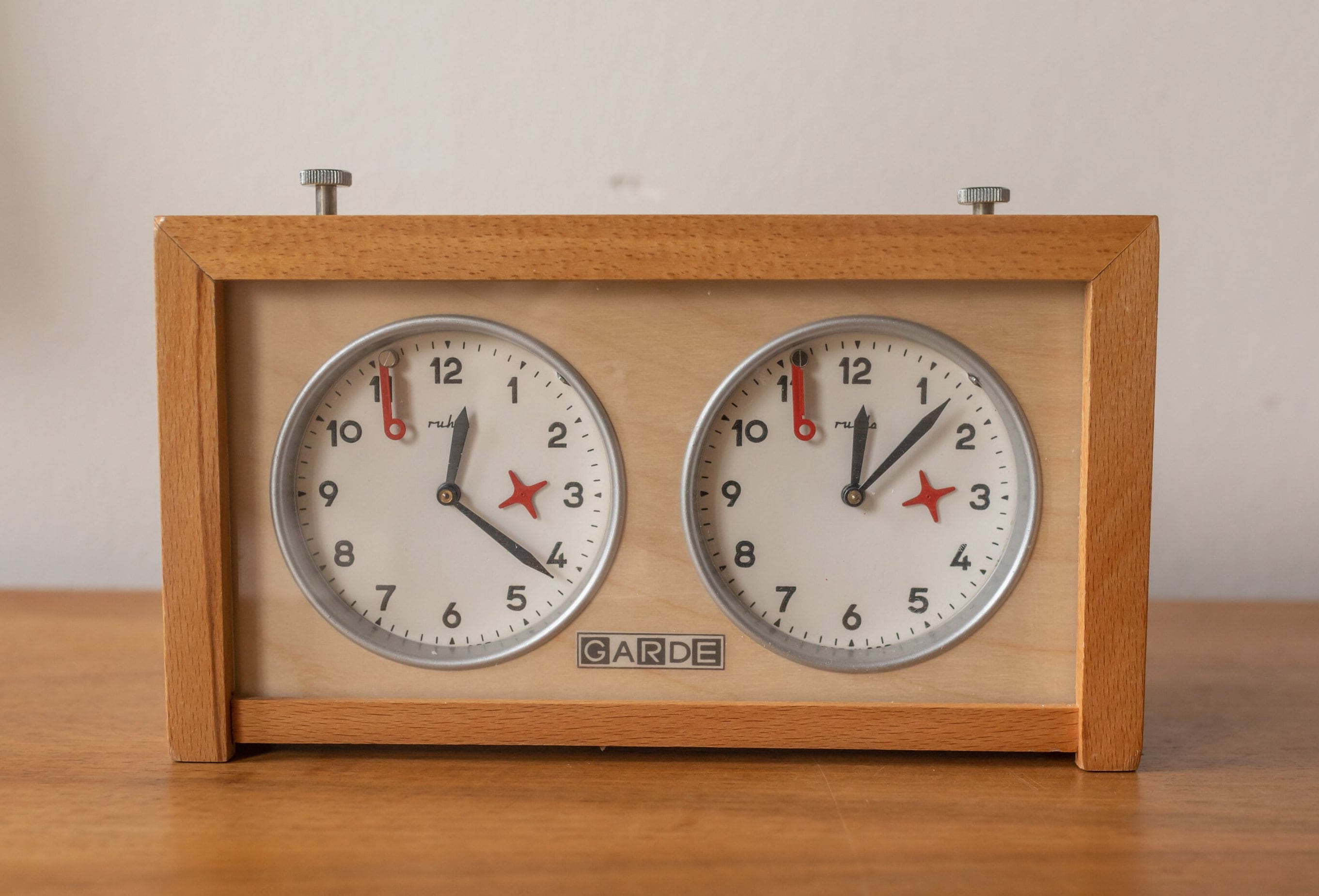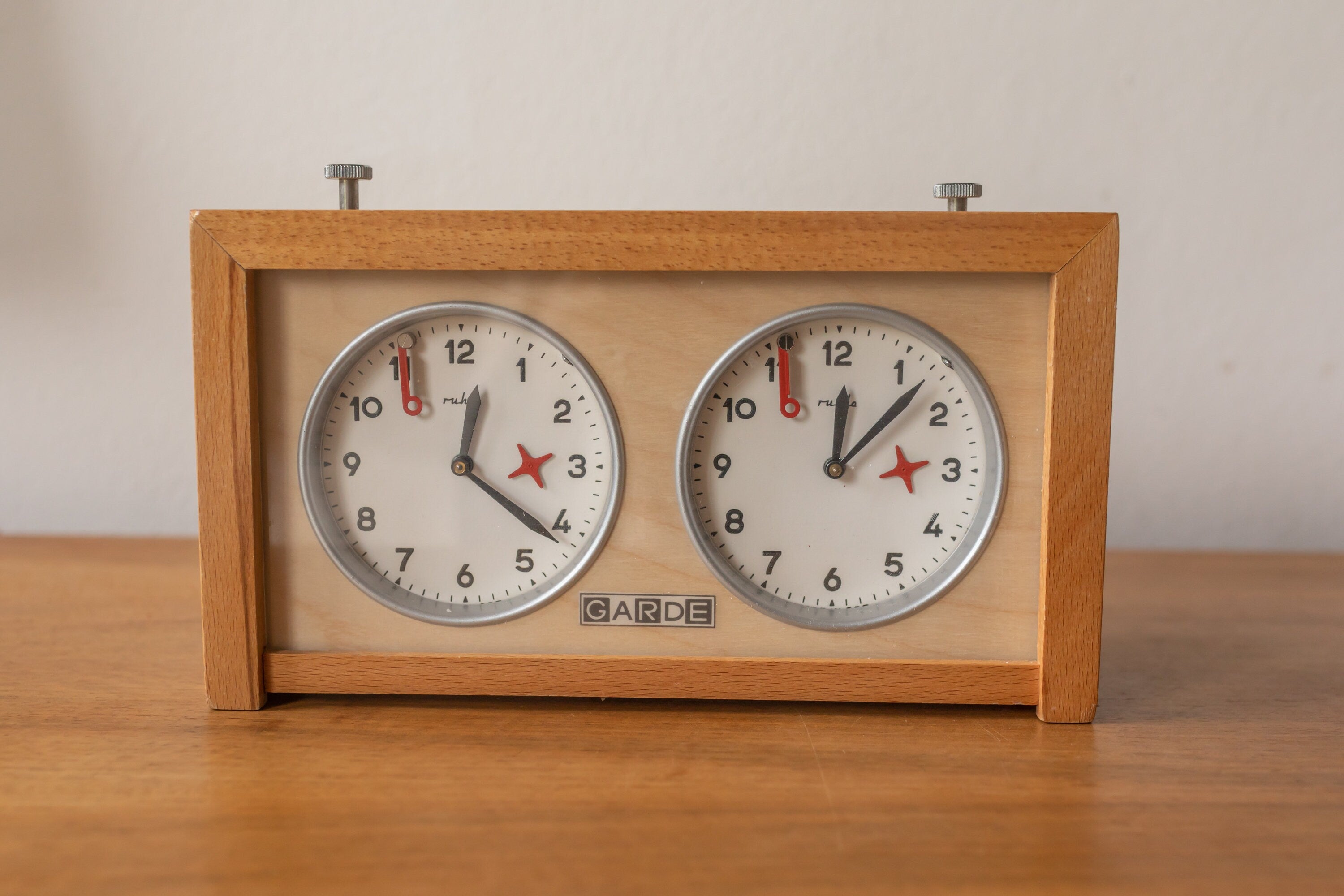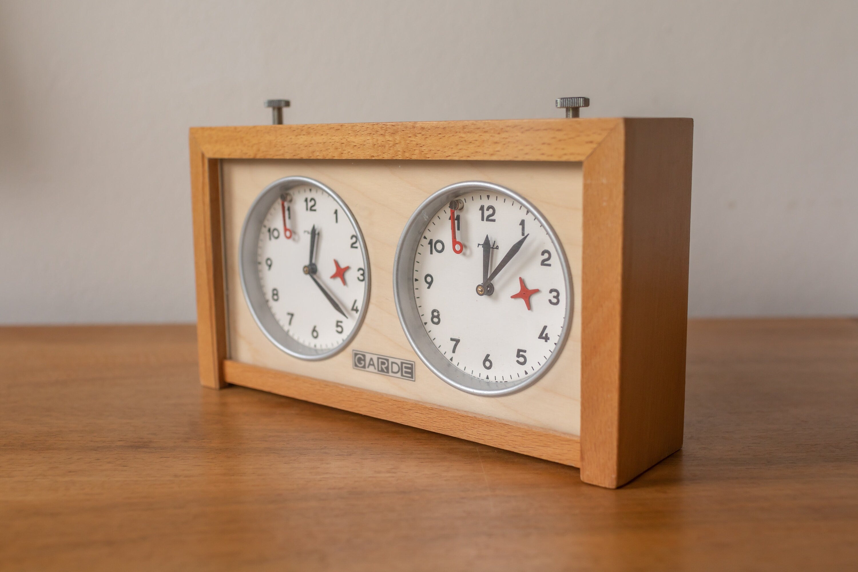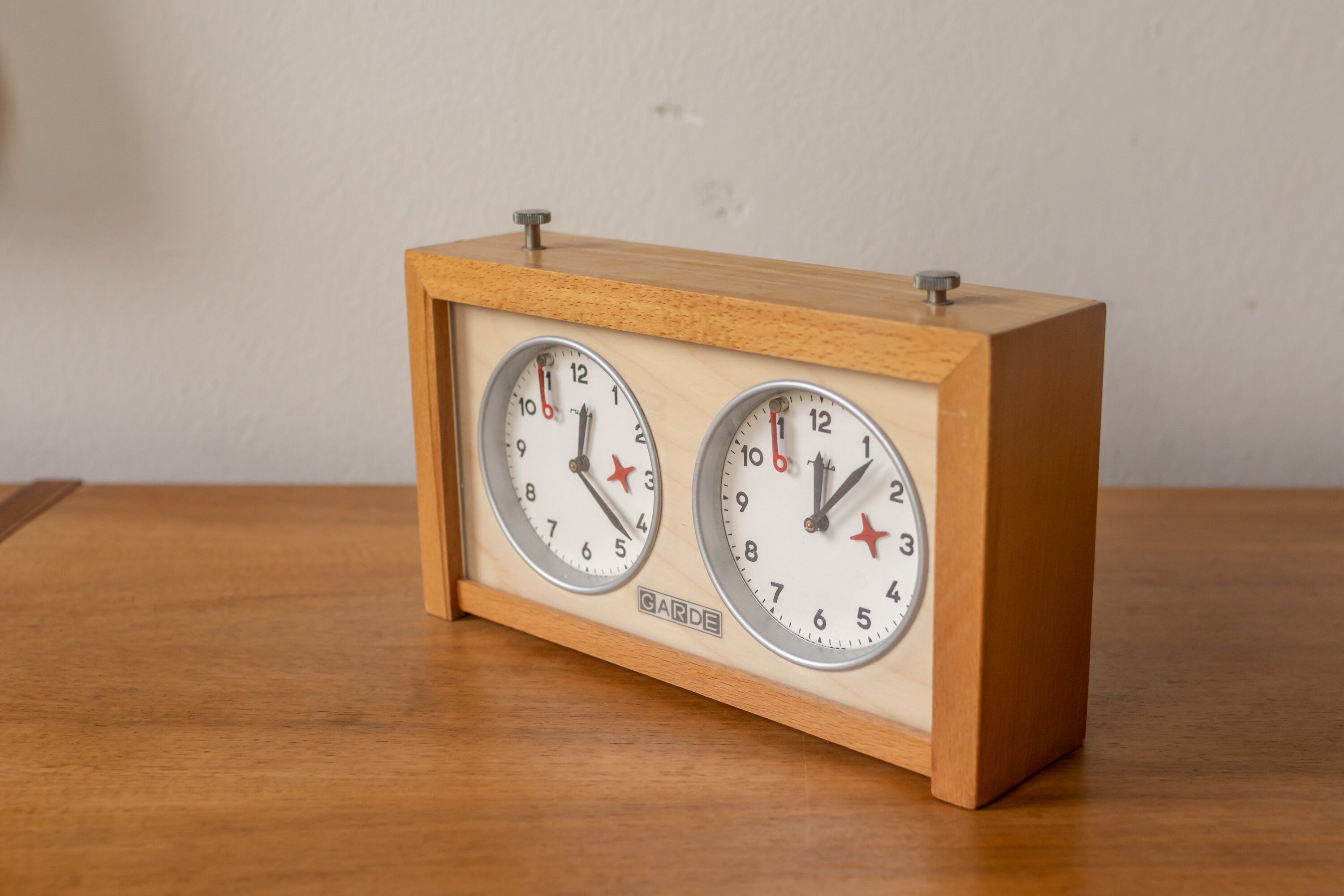 1970s - Garde Rhula Wooden Chess Clock. This chess clock was made by the brand Garde / Ruhla of West Germany. It's in very good condition with only slight user traces. It is in good working condition.