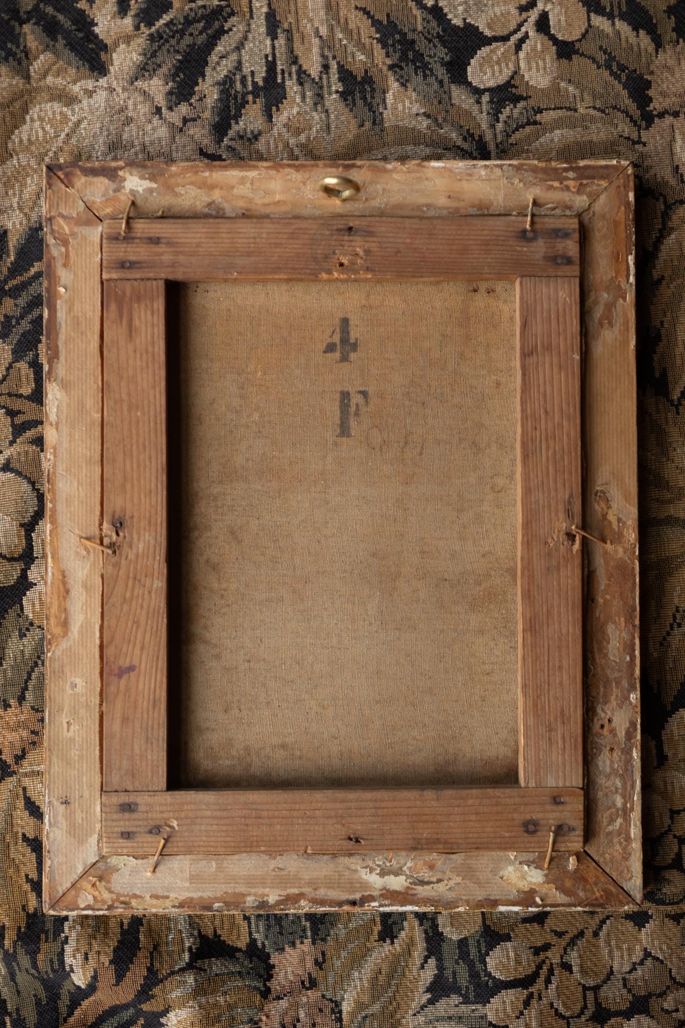 Good antique condition consistent with age. The painting shows natural surface texture and light age-related patina. The frame shows wear appropriate to its age.