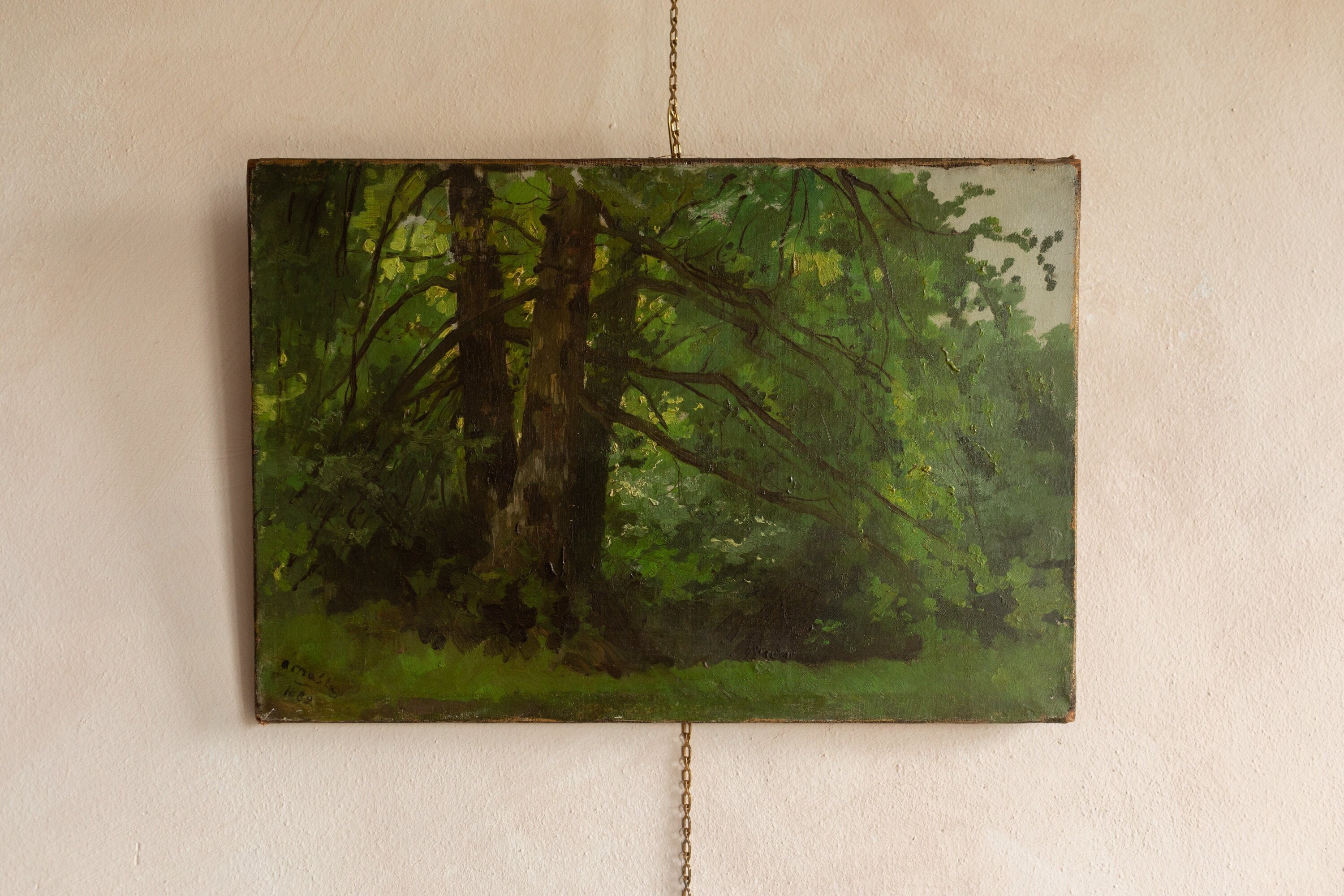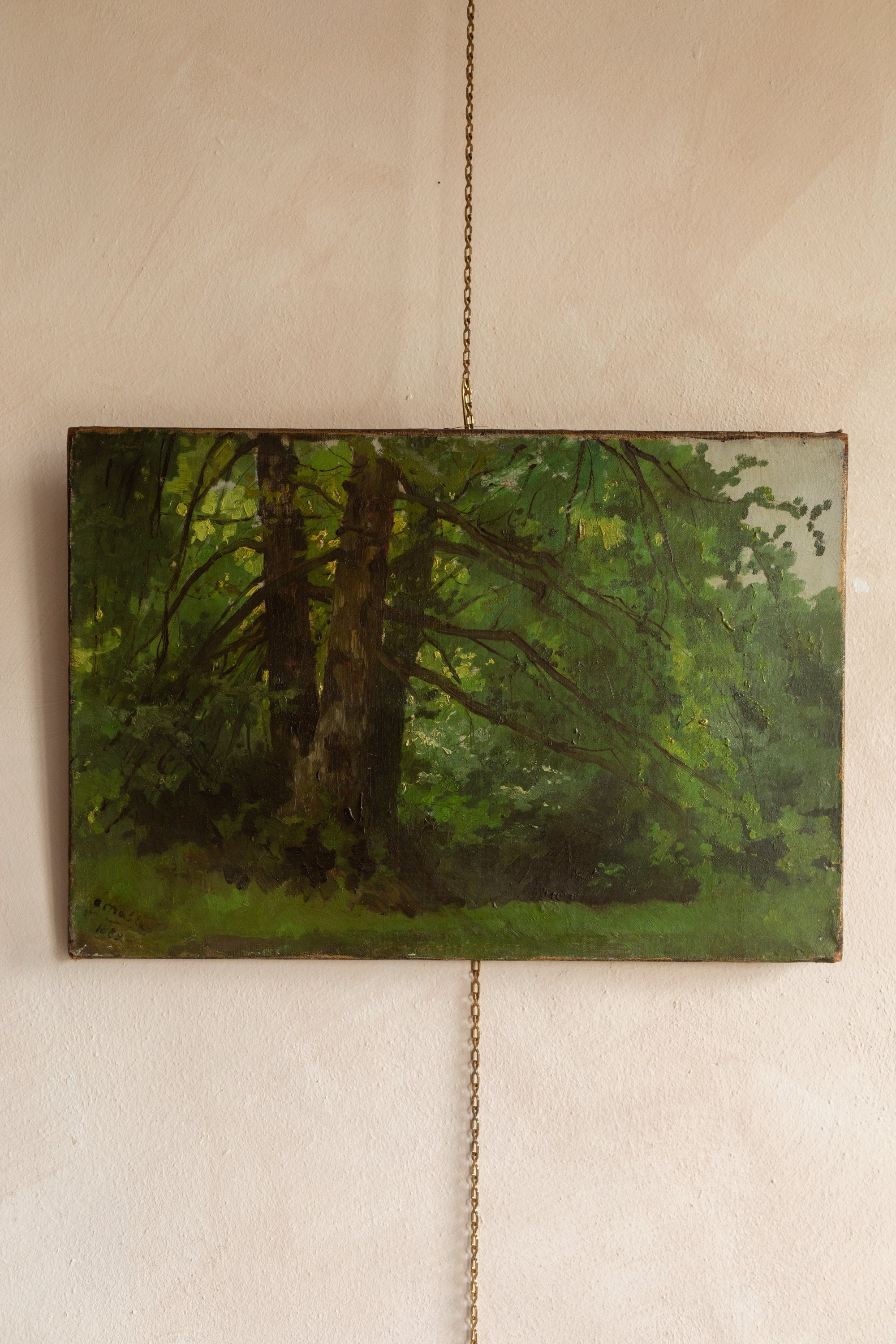 Antique French Shabby Still Life Painting - Forest and Trees - Oil on Canvas - 19th Century