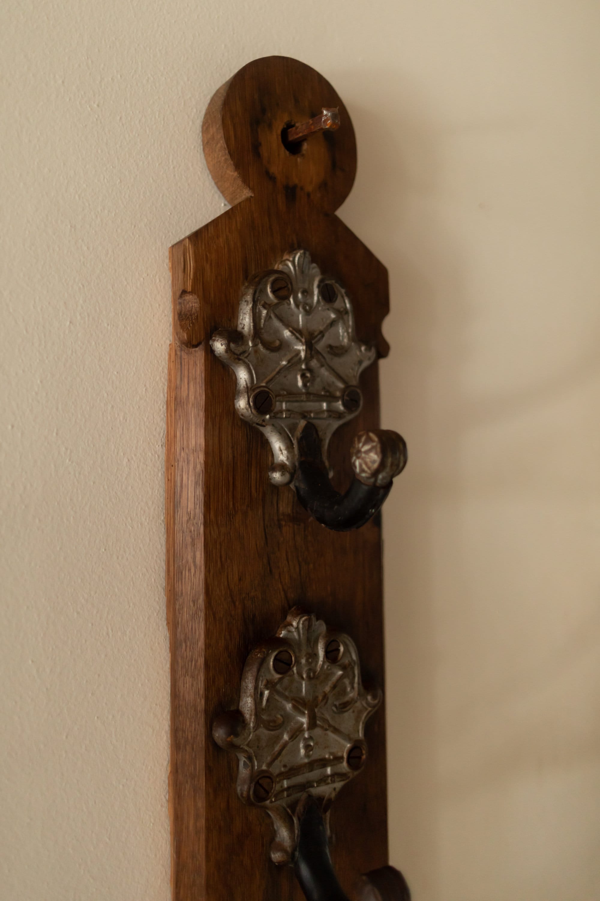 The warmth and character of aged wood combined with the solidity and grace of iron create a uniquely stylish storage solution for your hats, while simultaneously paying homage to the past. Don't miss out on this opportunity to own a piece of functional art that effortlessly combines form and function, all while showcasing the exquisite craftsmanship of a bygone era.