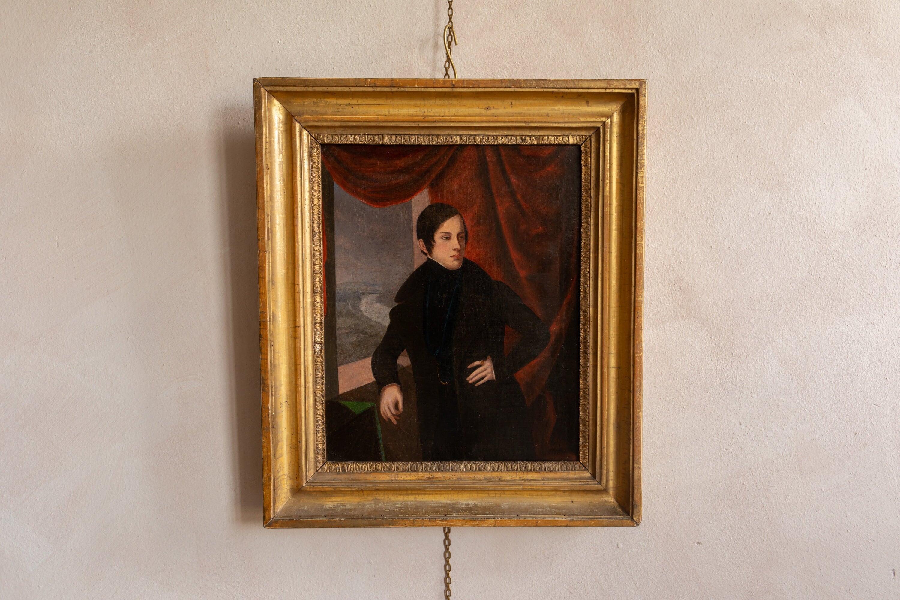 19th Century Antique Portrait Oil Painting on Canvas of a Handsome Gentleman standing in front of a window. This piece comes in a beautiful heavy gilt frame and is in overall great condition for its age.