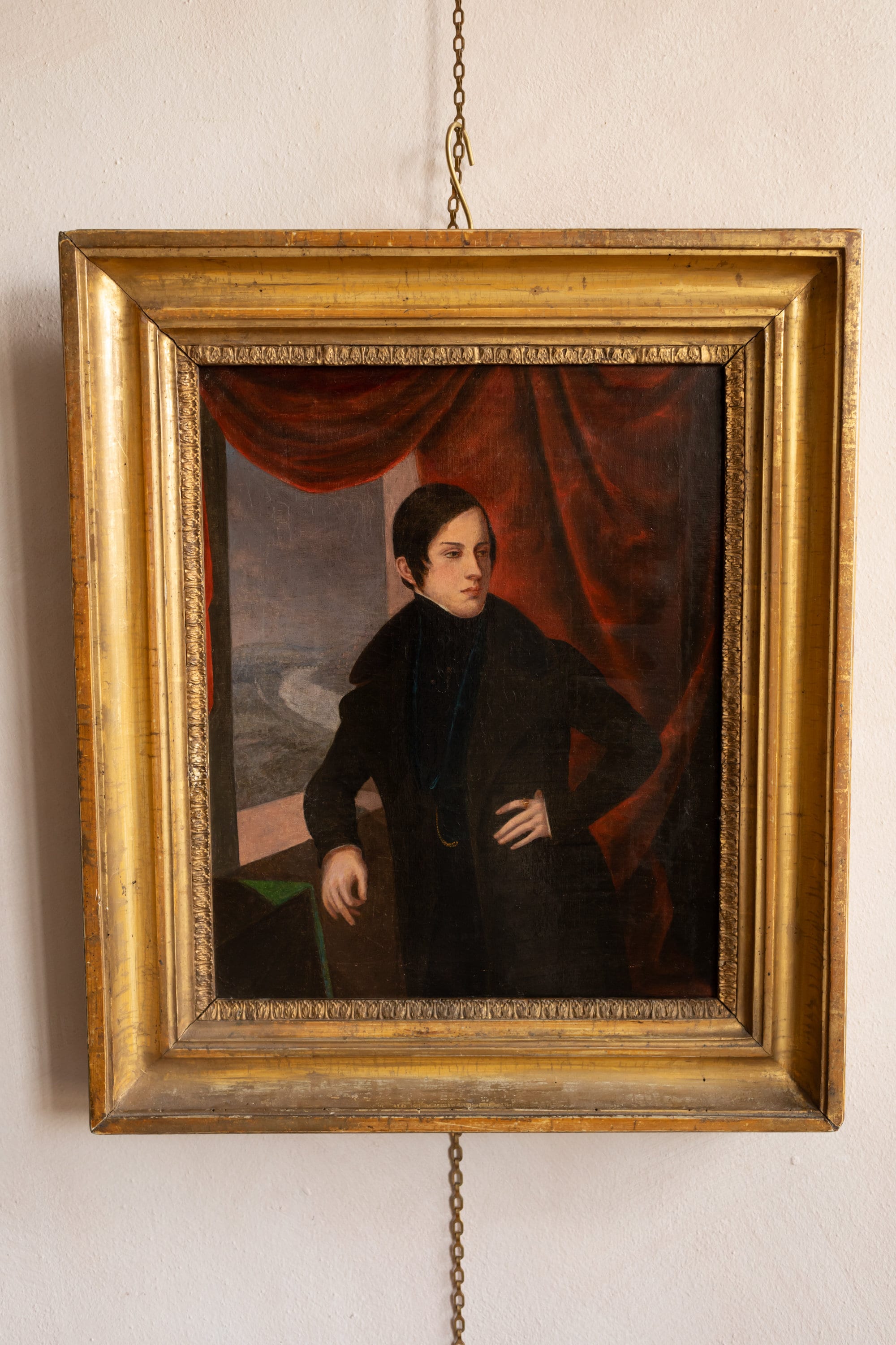 Antique Portrait Oil Painting on Canvas of a Handsome Gentleman - 19th Century