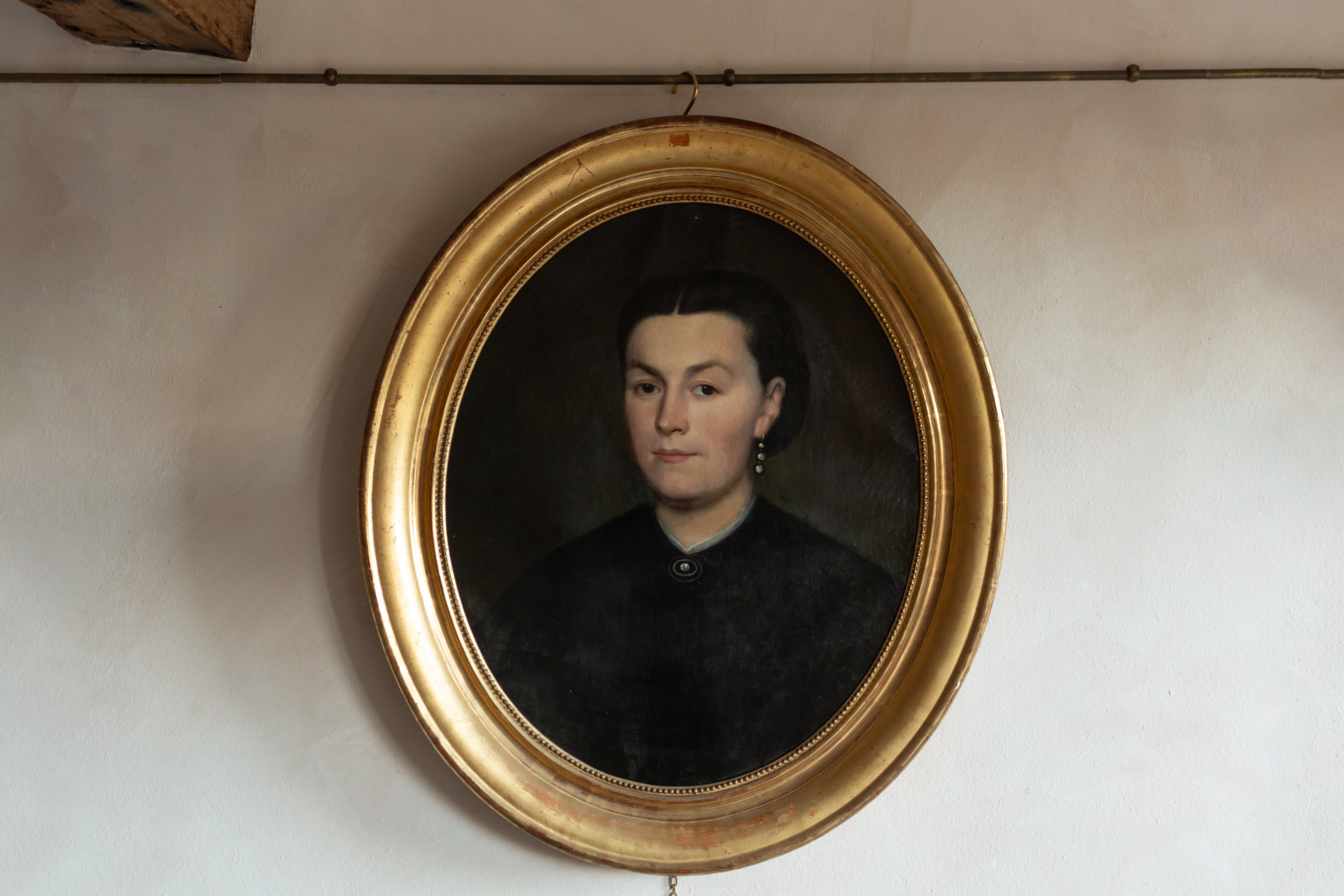 Antique Woman Portrait Oil Painting - 19th Century - in Oval Gilt Frame