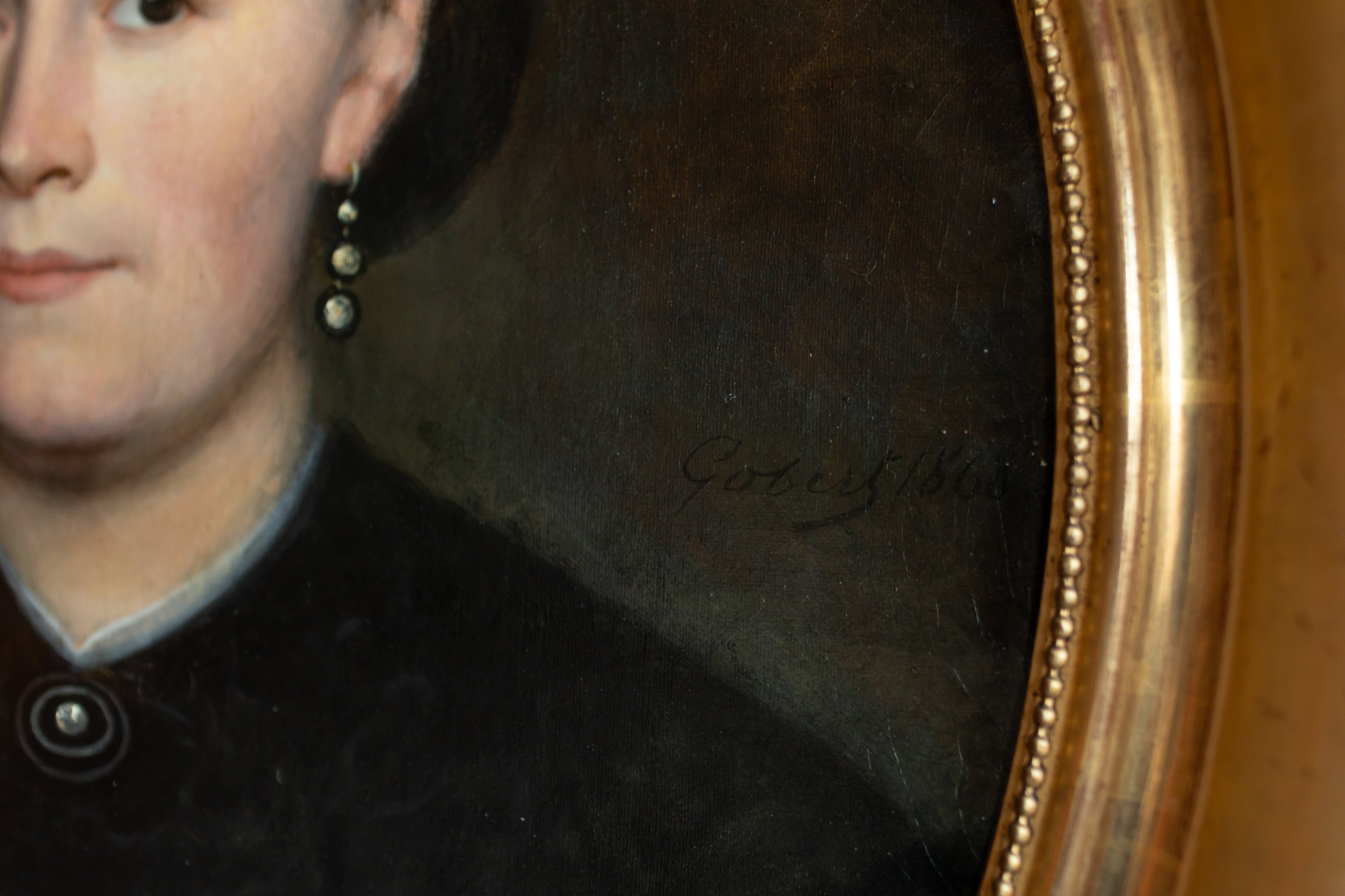 A beautiful painting of a woman, signed by the artist "Gobert" and dated "1868". Recently professionally cleaned.