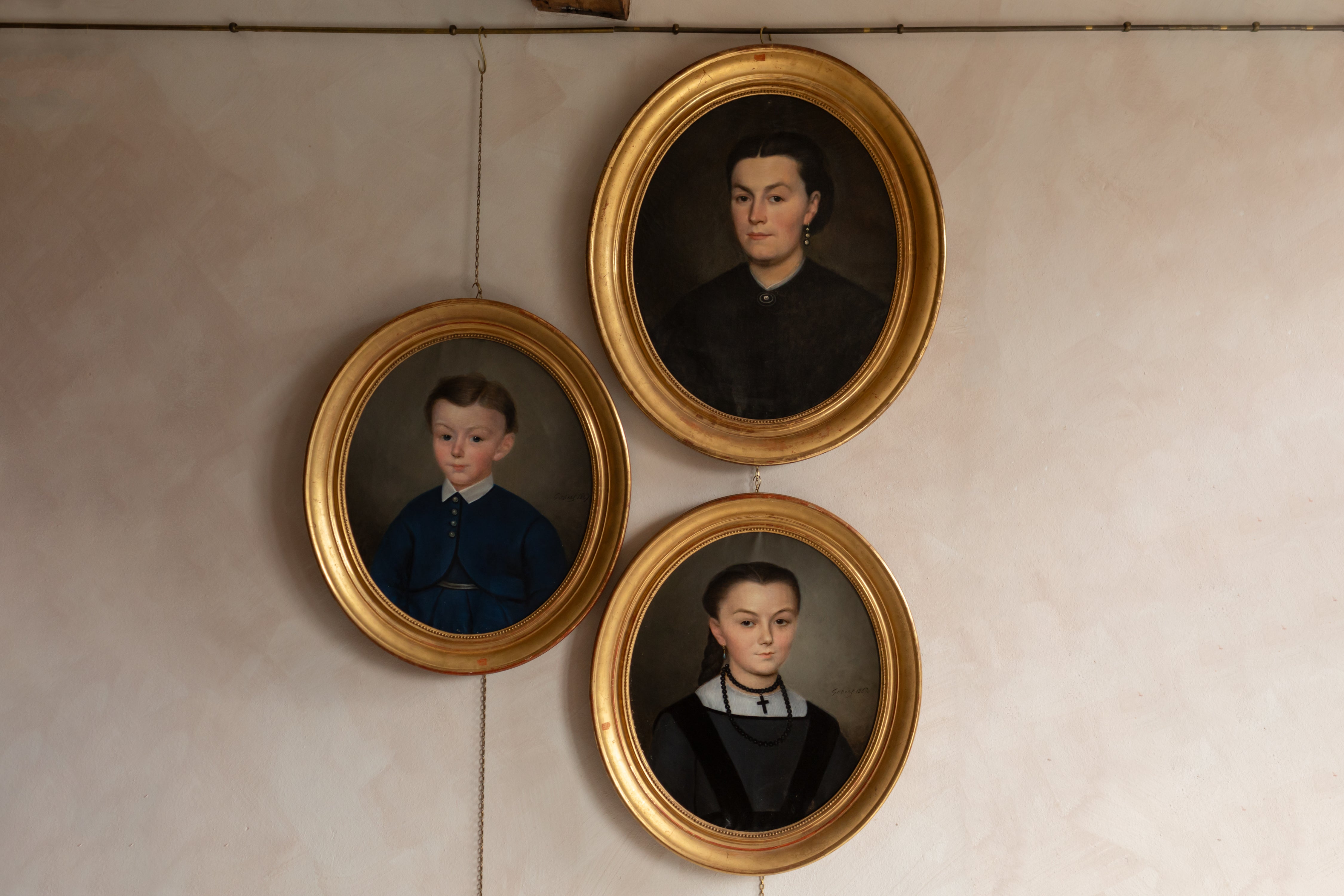 We also have two paintings of her children in our collection that are sold together apart from this portrait. This listing is for the mom alone.
