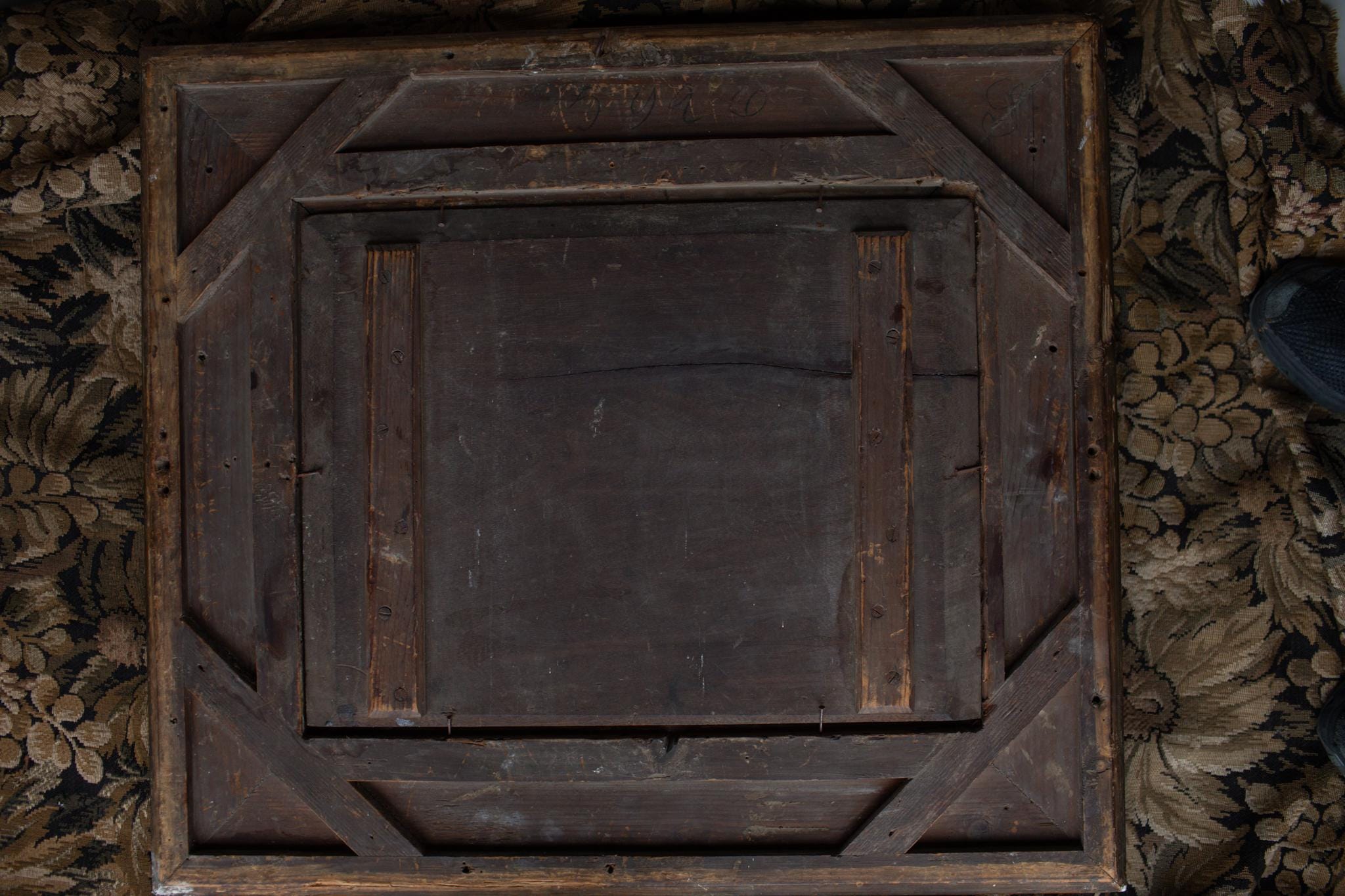 Painted on its original wood panel, the work has excellent stability and a pleasing surface texture. It is housed in a magnificent period gilt frame, richly carved with foliate ornament and beaded mouldings. The frame’s depth and sculptural quality match the painting’s scale and give it the presence of a museum piece. The painting is in good antique condition. It has been recently cleaned and a new varnish applied. Minor age wear and light craquelure expected for a 19th-century panel. Frame shows patina, rubbing, and small losses consistent with age, all contributing to its character. It looks like a restorer did some structural work on the panel some time ago, the panel repairs are quite charming, add a lot of character, age and would be dating to a little over 100 years ago.