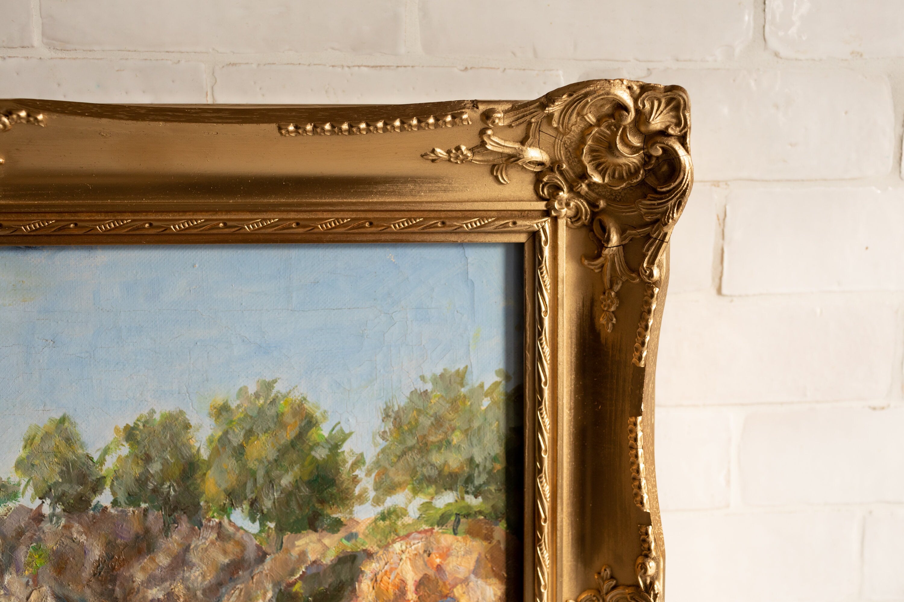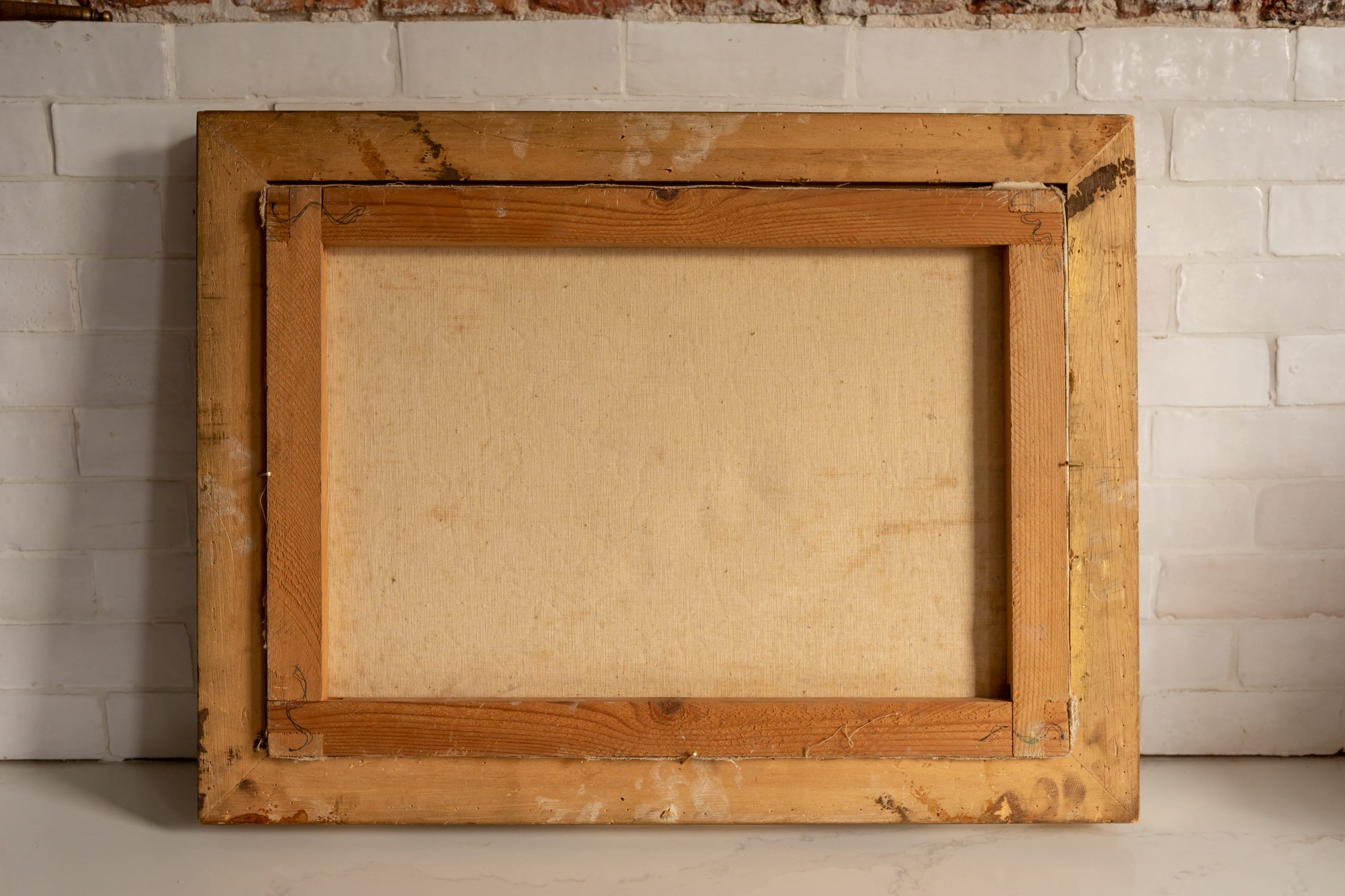 1950's Dutch Shabby Vintage Beach / Seascape / Coastal Landscape Oil Painting on Canvas. Very fresh Colours. This painting is a bit shabby and the craquelure makes the canvas a bit translucent, but this is not visible when hanging on the wall. Comes in a bit shabby gold painted frame.