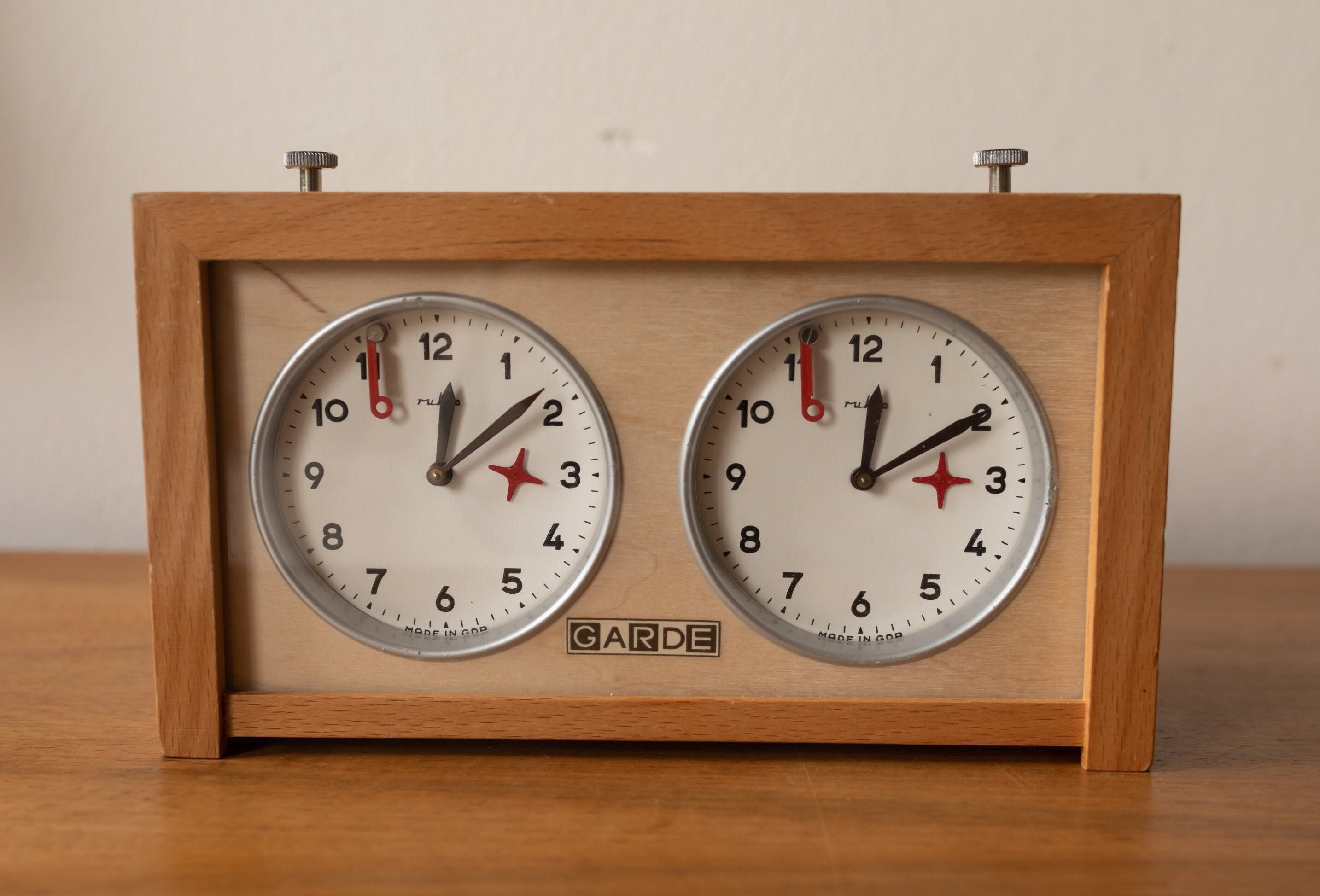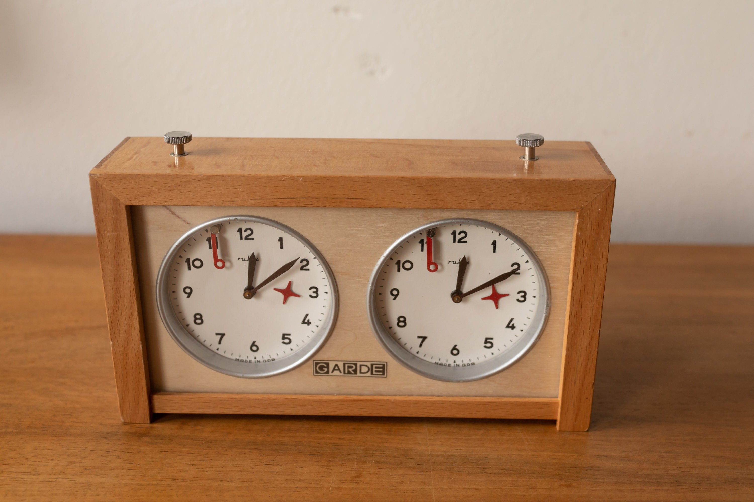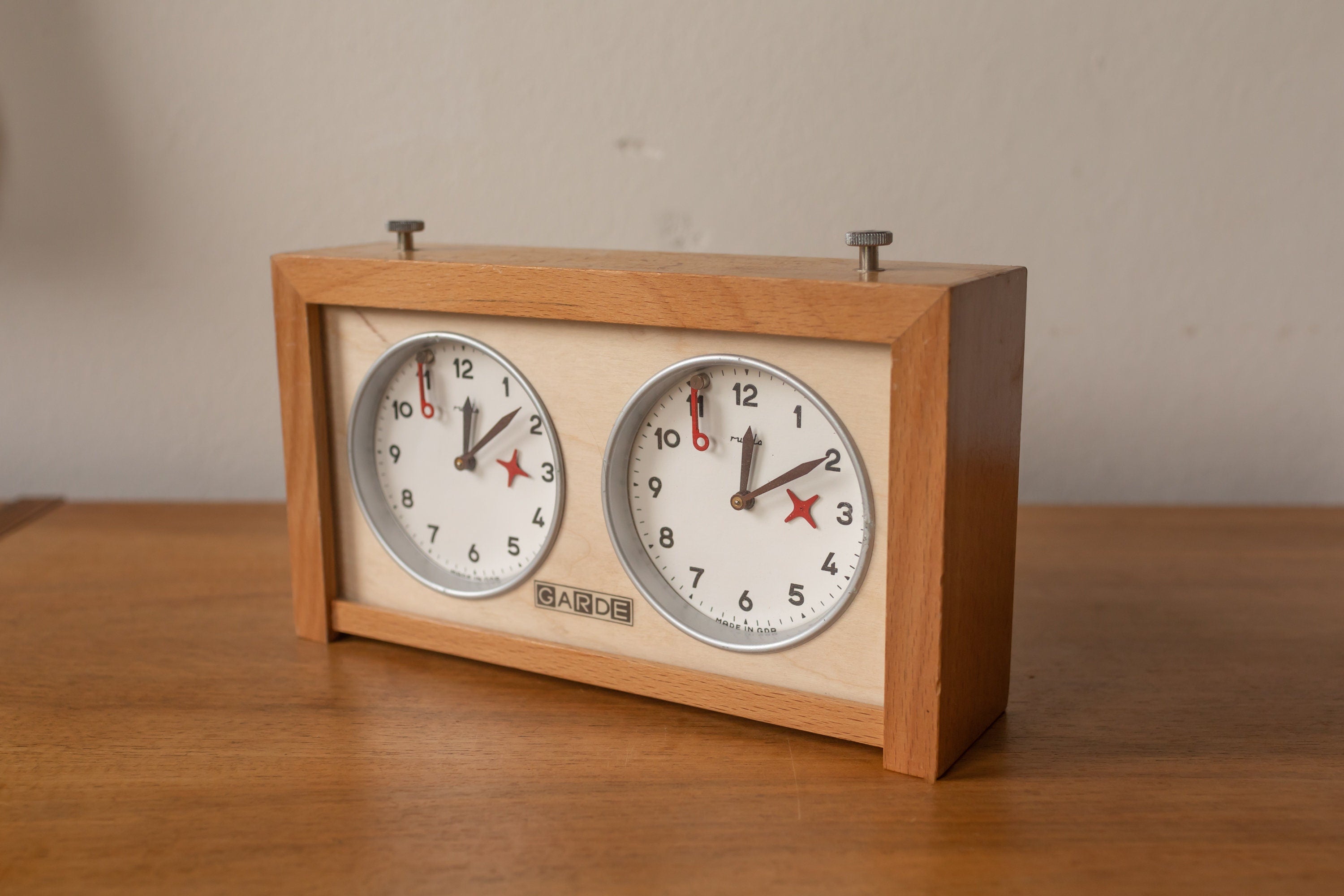 1970s - Garde Rhula Wooden Chess Clock. This chess clock was made by the brand Garde / Ruhla of West Germany. It's in very good condition with only slight user traces. It is in good working condition.
