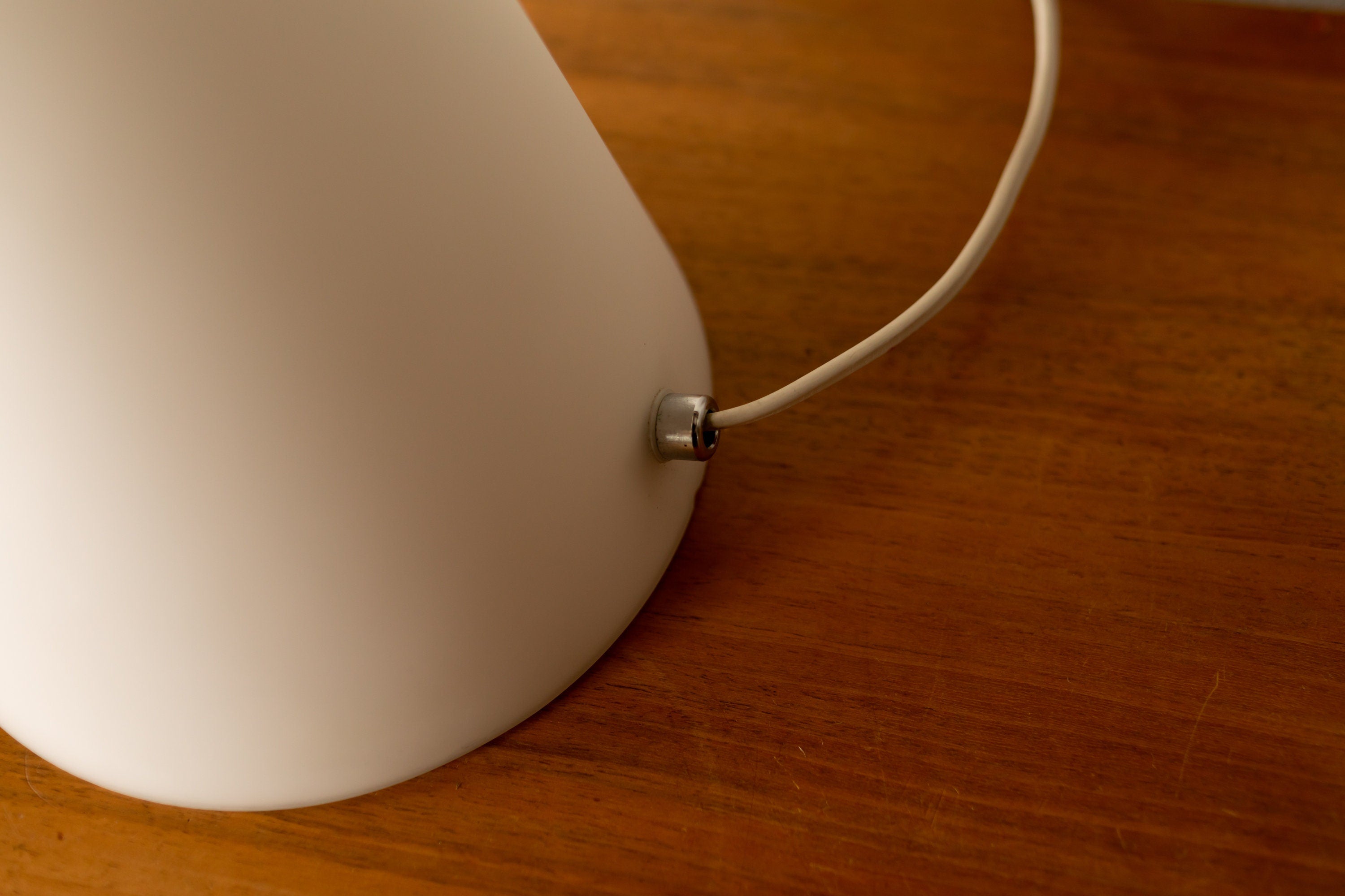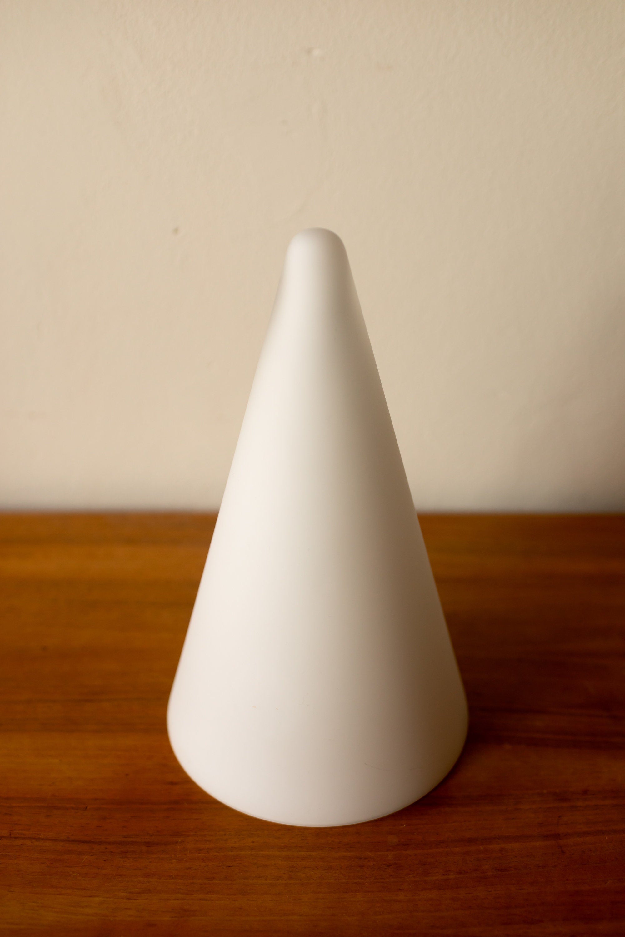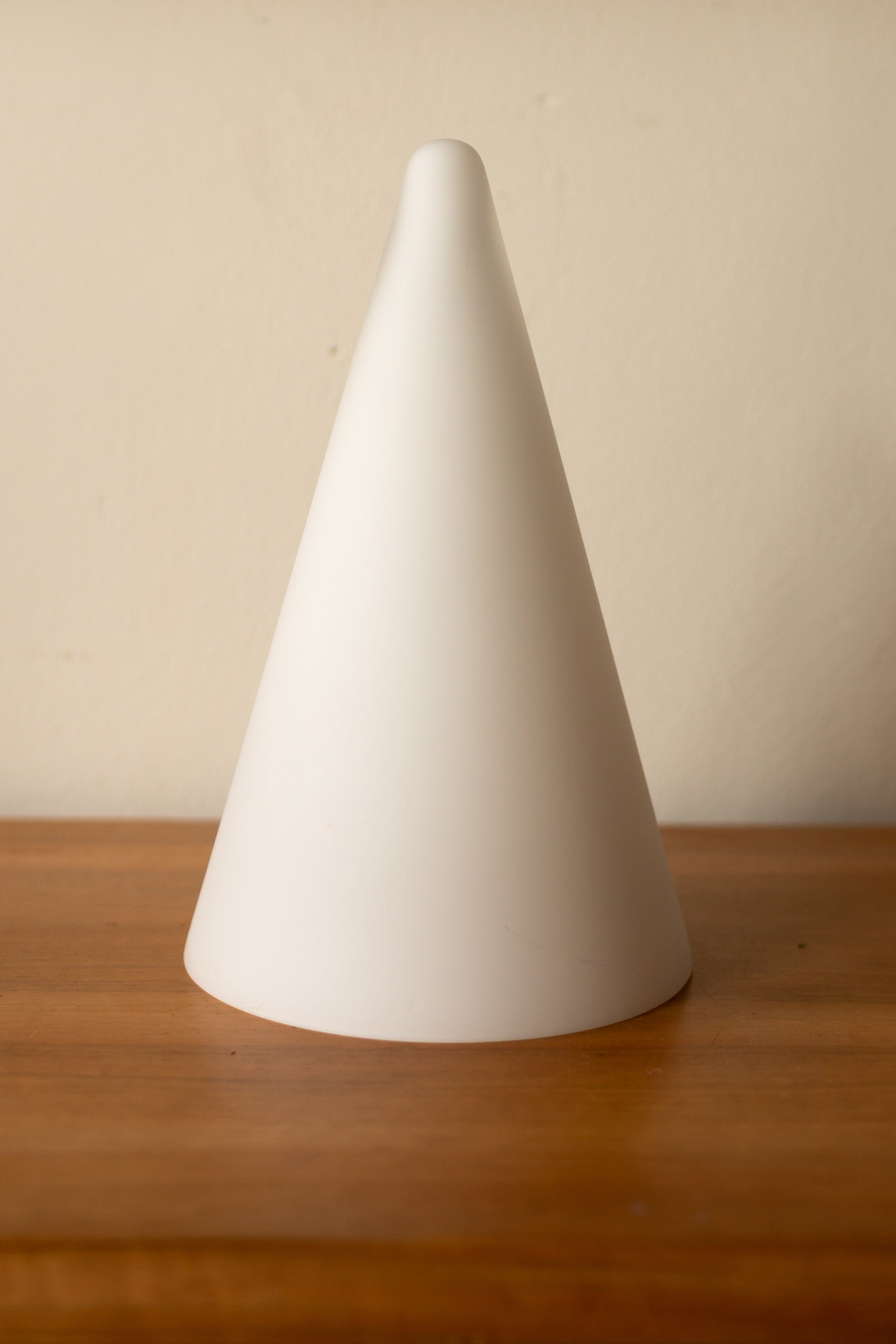 A wonderful vintage Italian table teepee lamp. This lamp has a beautiful minimal geometrical design. The glass is frosted white all the way, making the light shine through.